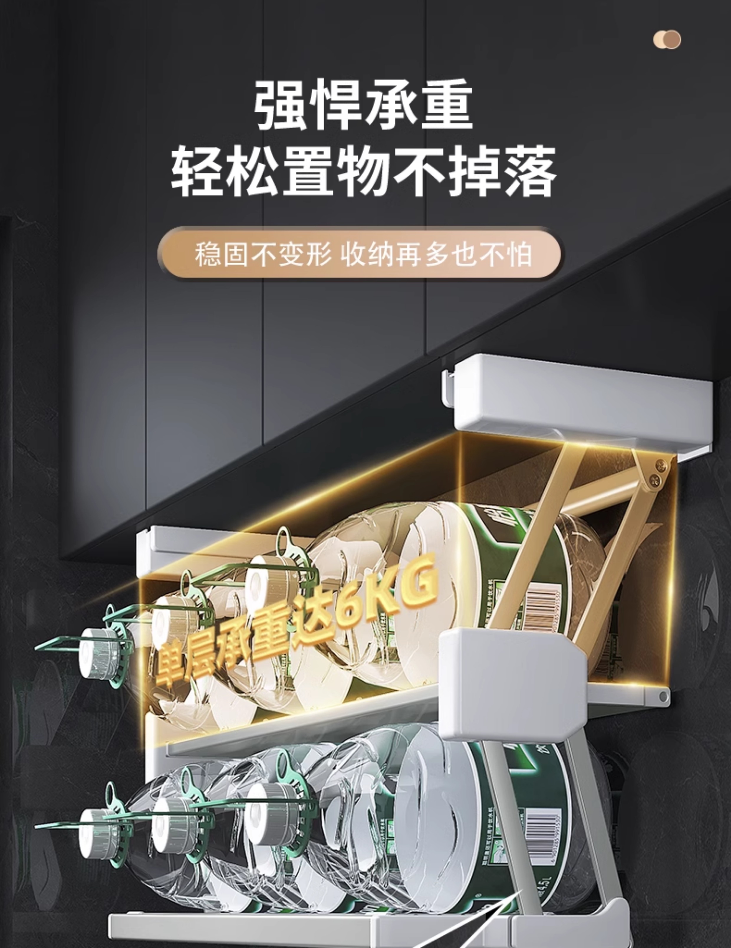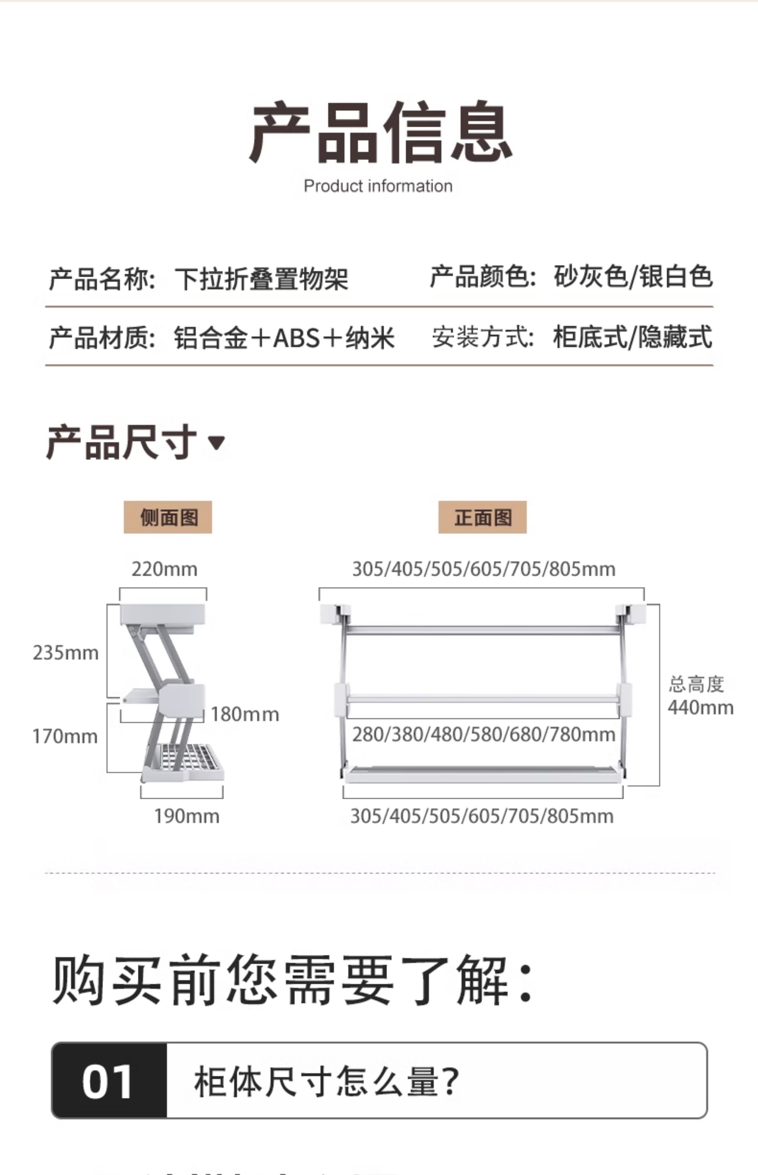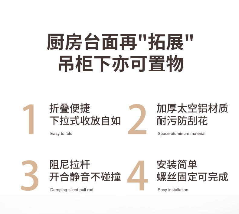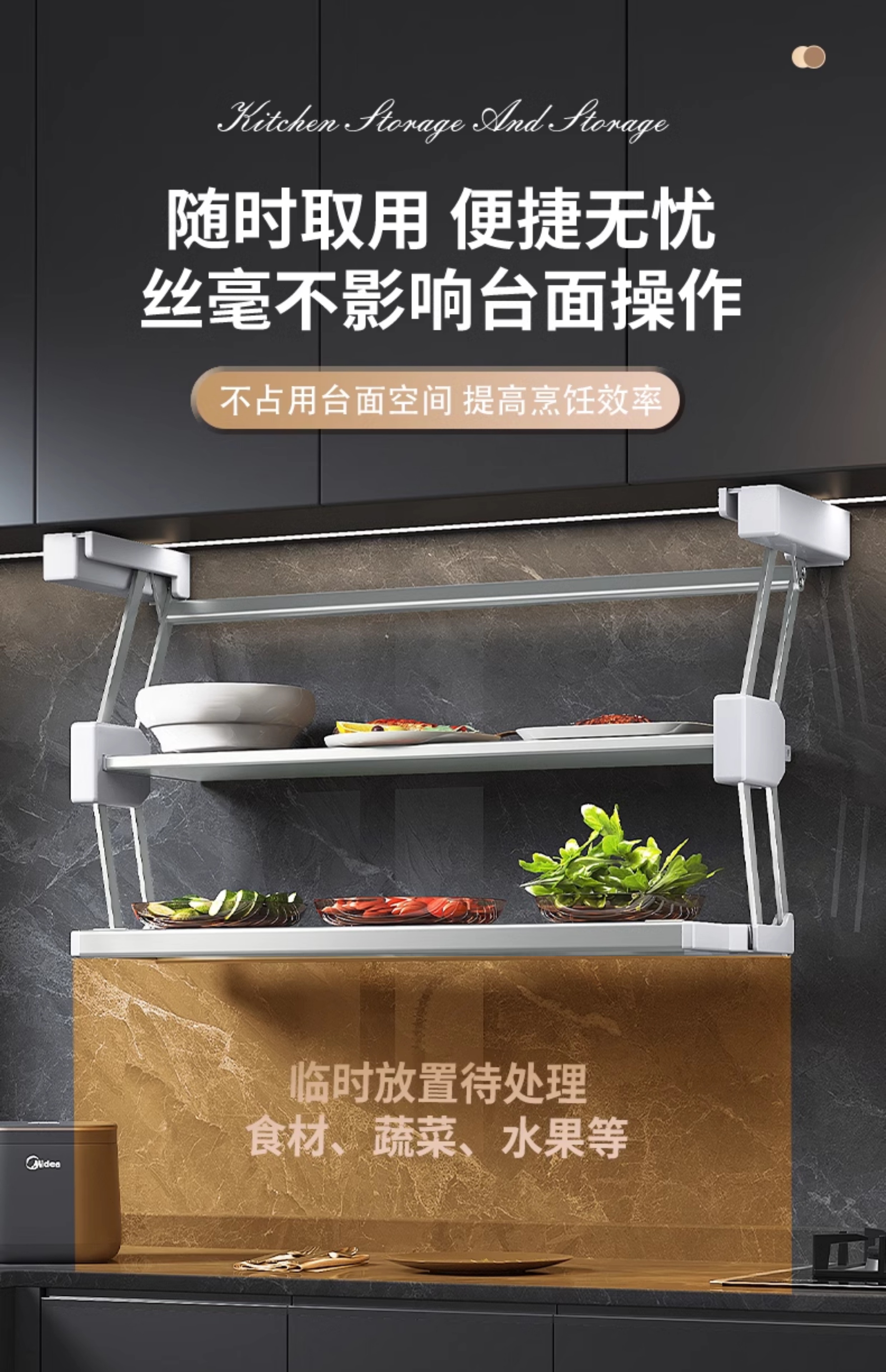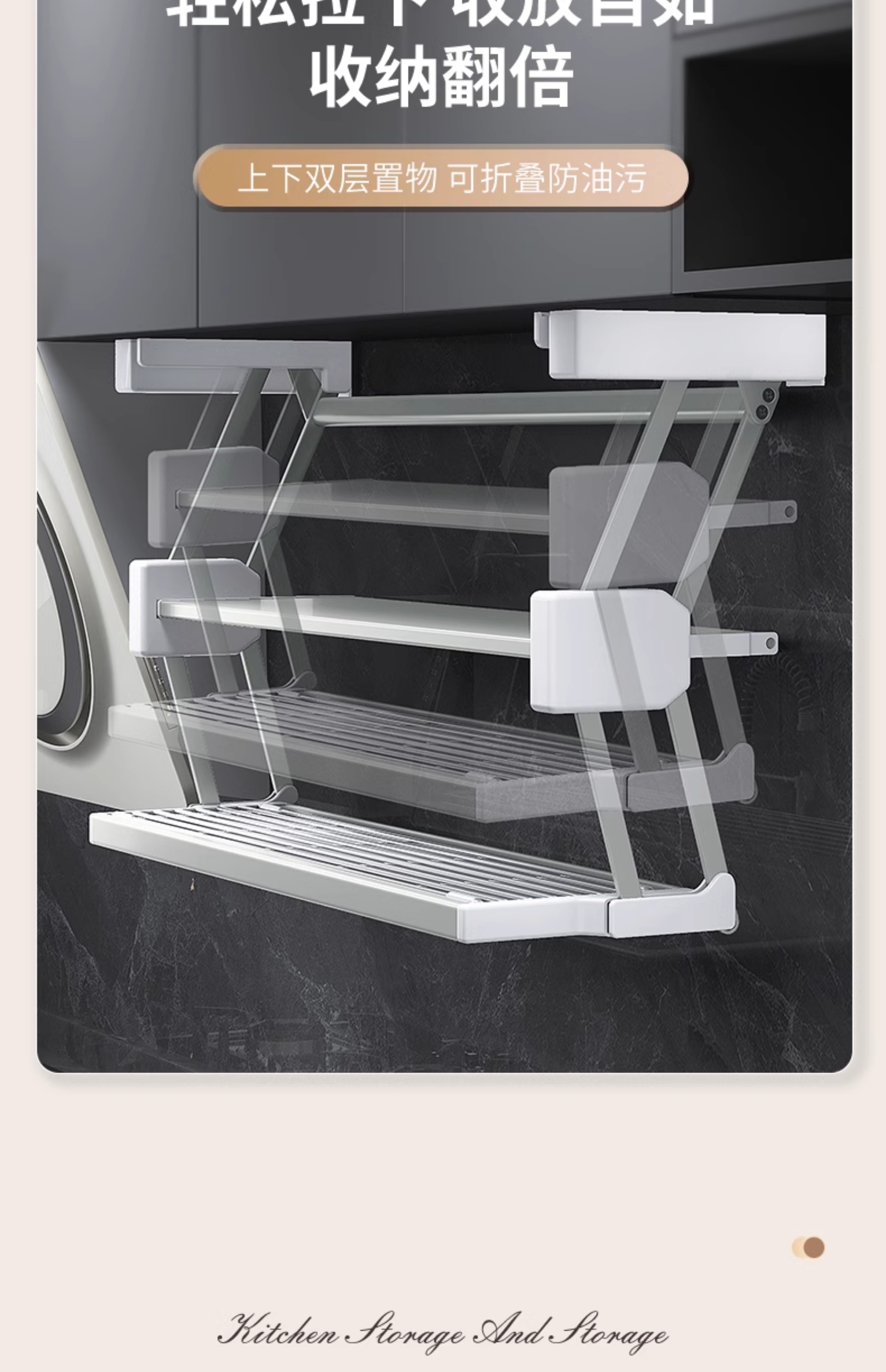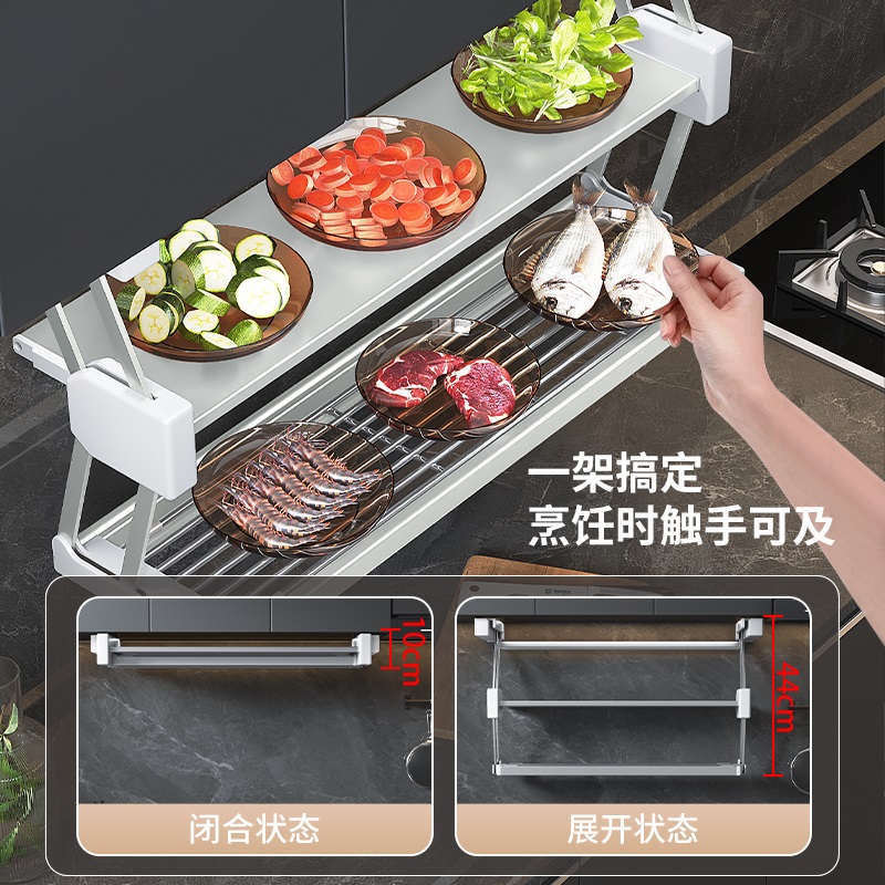 ☊ 주방 조리대 접이식 벽 캐비닛 아래 텔레스코픽 랙 알루미늄 합금 더블 레이어 조미료 보관