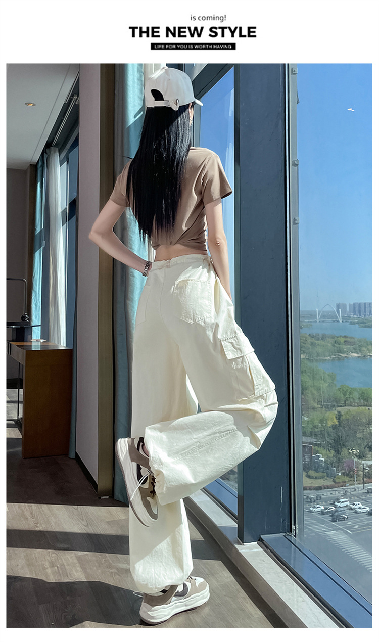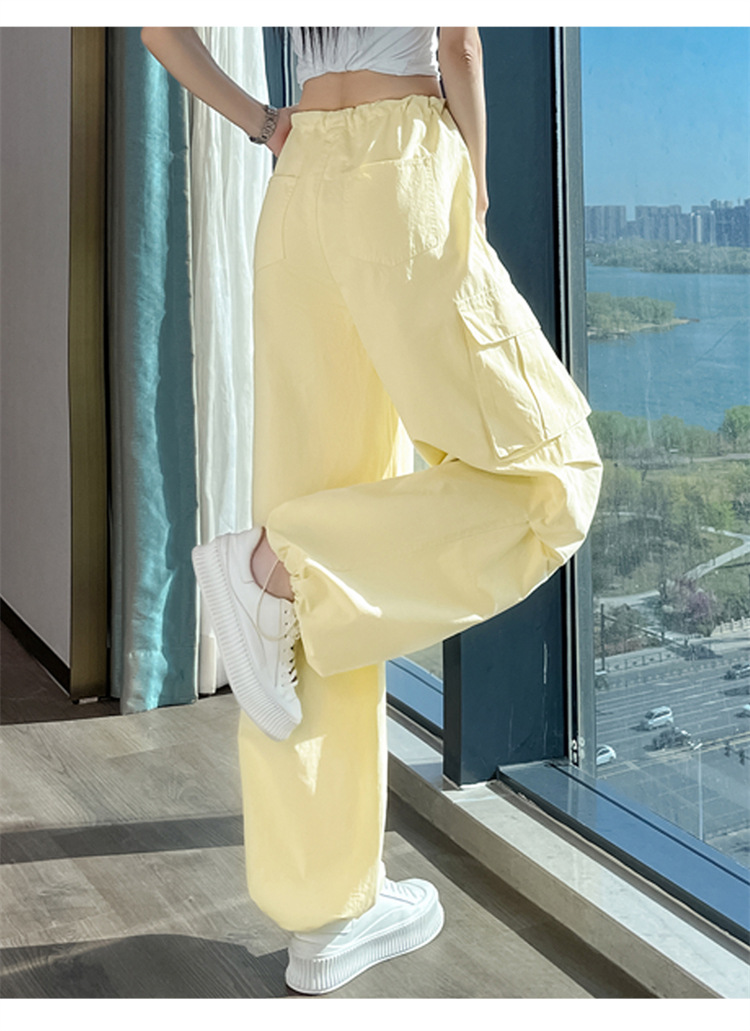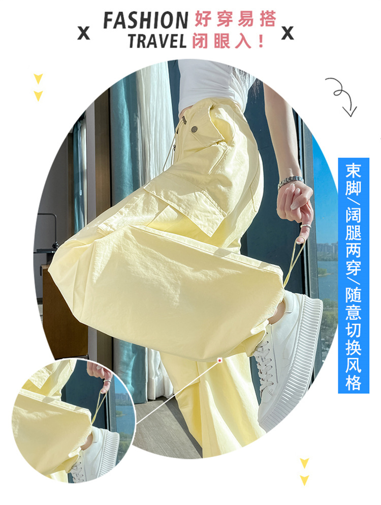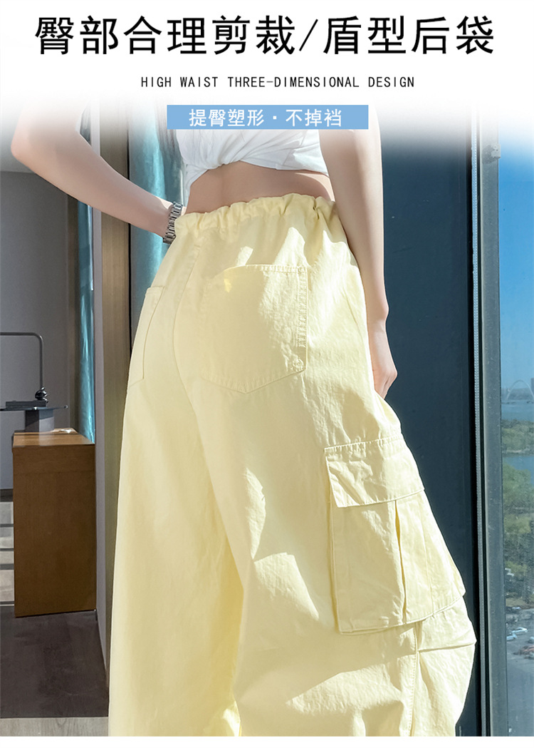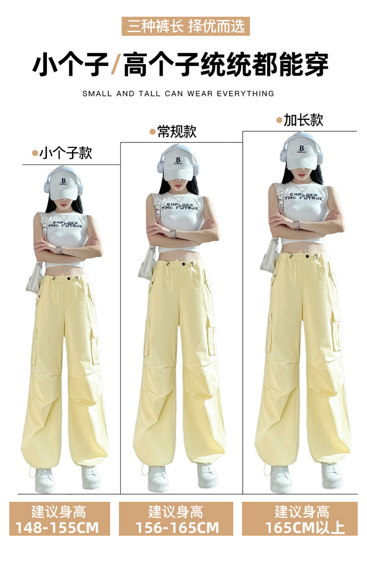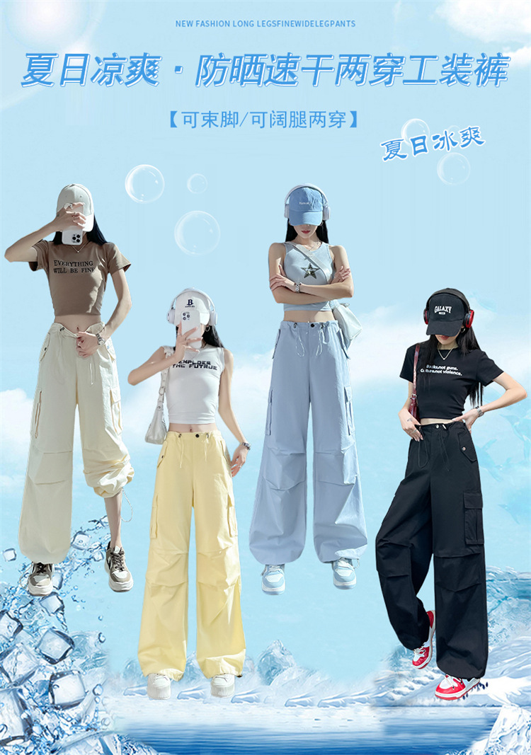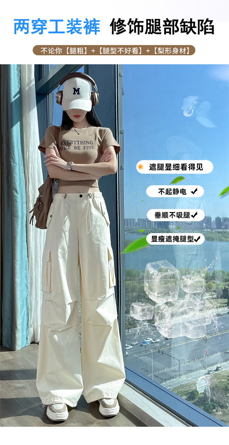 여름 여성용 아메리칸 핫걸 블루 오버올 하이 웨이스트 드로스트링 와이드 레그 팬츠 루즈 아이스 실크 속건 스포츠 하이킹 팬츠