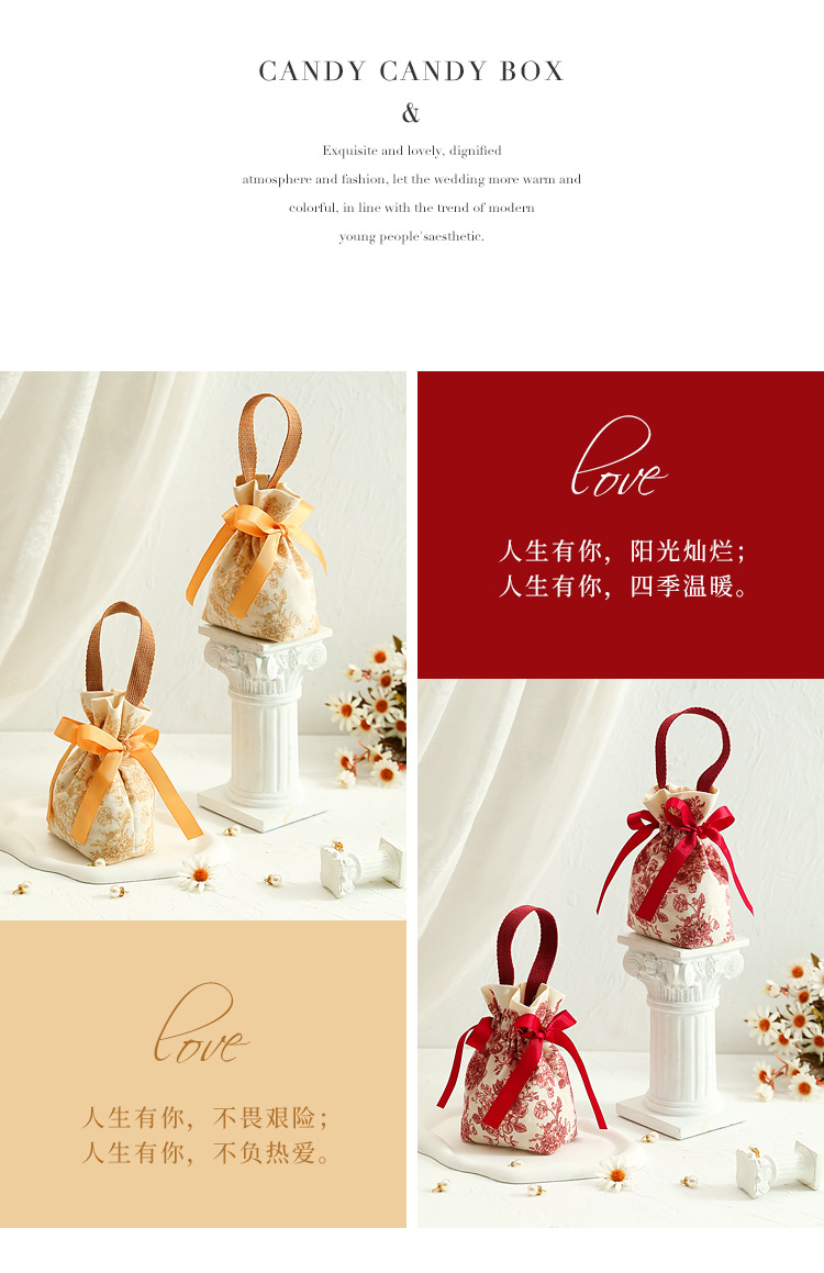 2025 결혼식 특별 웨딩 사탕 가방 웨딩 사탕 선물 상자 반환 선물 가방 천 가방 손으로 고급 웨딩 작은 신선한스토어 가기