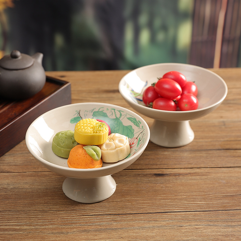 새로운 중국 스타일의 세라믹 높은 디저트 접시, 애프터눈 티, 티 파티 접시, 화로에서 끓인 티, 페이스트리, 스낵, 과일 접시스토어 가기