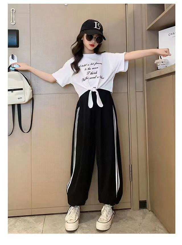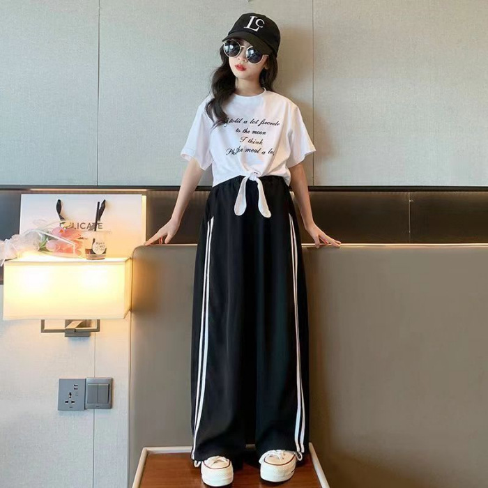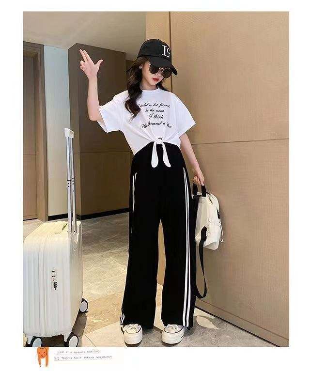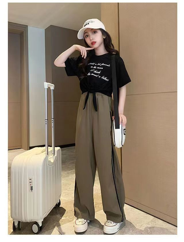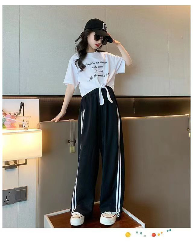 여아 여름 정장 2025 핫 스타일 인터넷 연예인 여름 여아 스트리트 캐주얼 와이드 팬츠 투피스 세트 트렌디