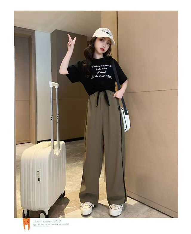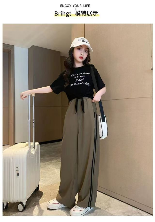 여아 여름 정장 2025 핫 스타일 인터넷 연예인 여름 여아 스트리트 캐주얼 와이드 팬츠 투피스 세트 트렌디스토어 가기