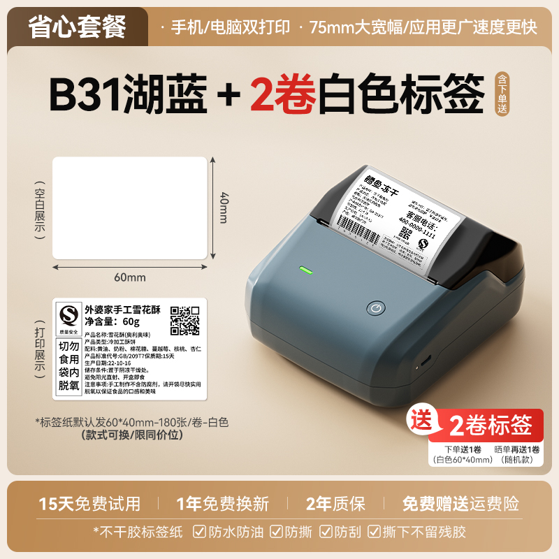 • [대형 포맷이 더 빠릅니다.] B31+는 60*40-180 흰색 시트 1롤(크기 변경 가능) + 주문 시 추가 1롤을 제공합니다.