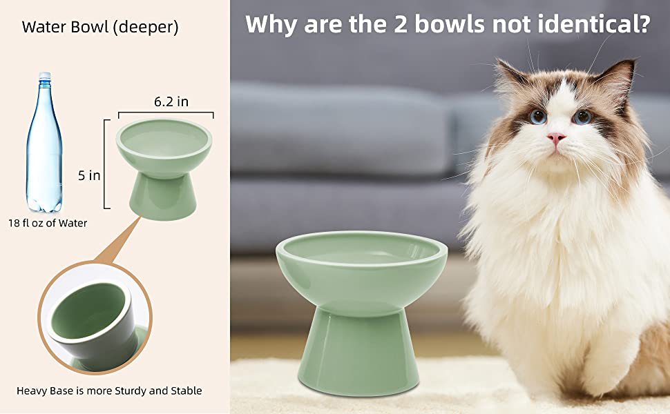 인터넷 연예인 키가 큰 대구경 세라믹 고양이 그릇, 목 보호 고양이 사료 그릇, 검은 턱 방지 고양이 식수 그릇, 입이 평평한 고양이