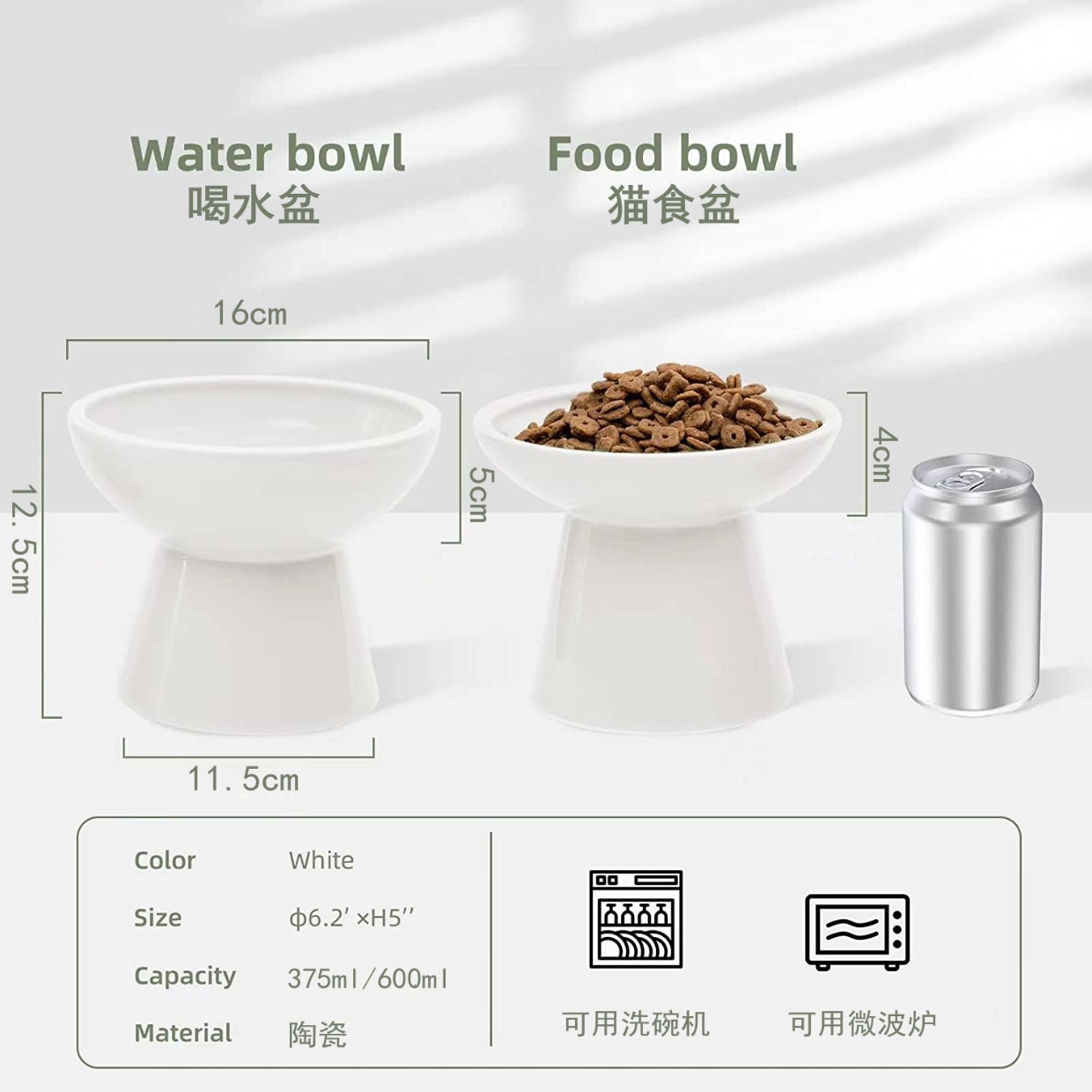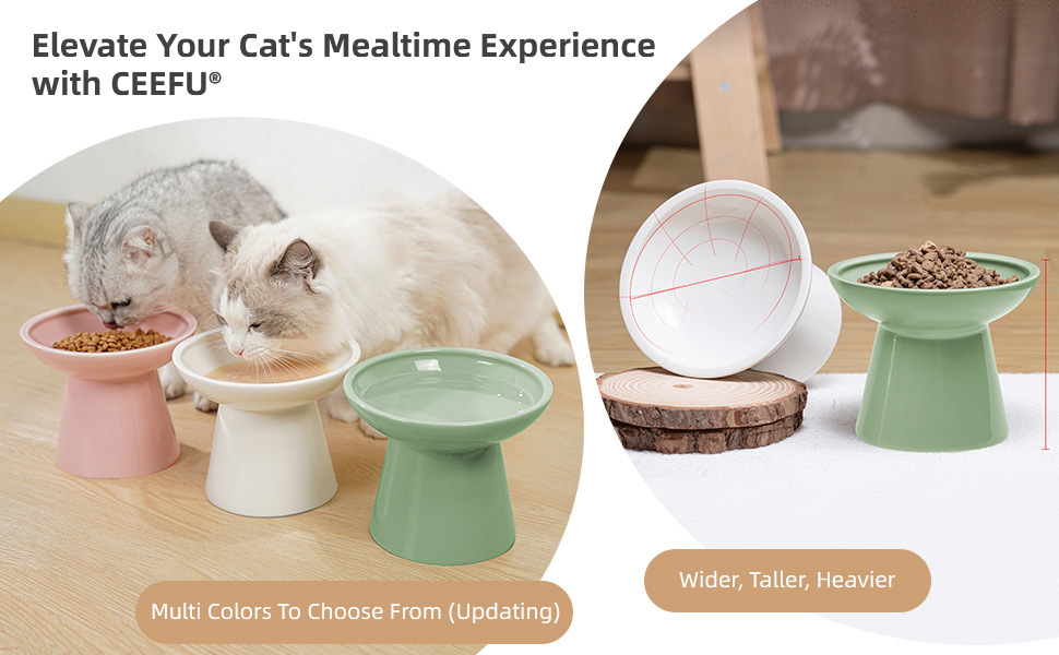 인터넷 연예인 키가 큰 대구경 세라믹 고양이 그릇, 목 보호 고양이 사료 그릇, 검은 턱 방지 고양이 식수 그릇, 입이 평평한 고양이스토어 가기