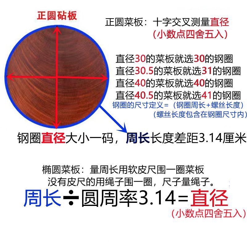 너비와 두께가 증가된 스테인리스 도마, 균열 방지 강철 고리, 도마, 강철 고리, 도마 가장자리, 원형 철 고리 고정 고리