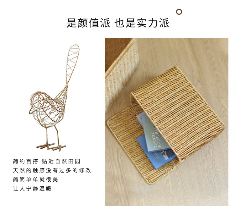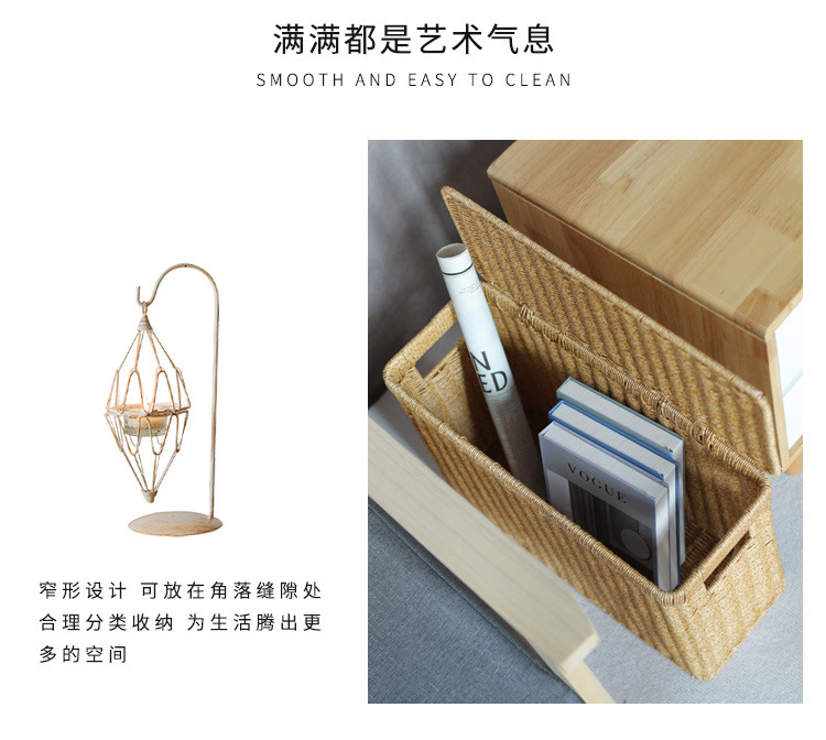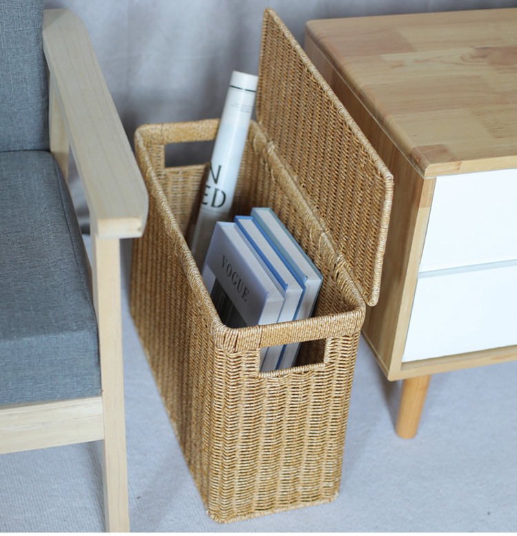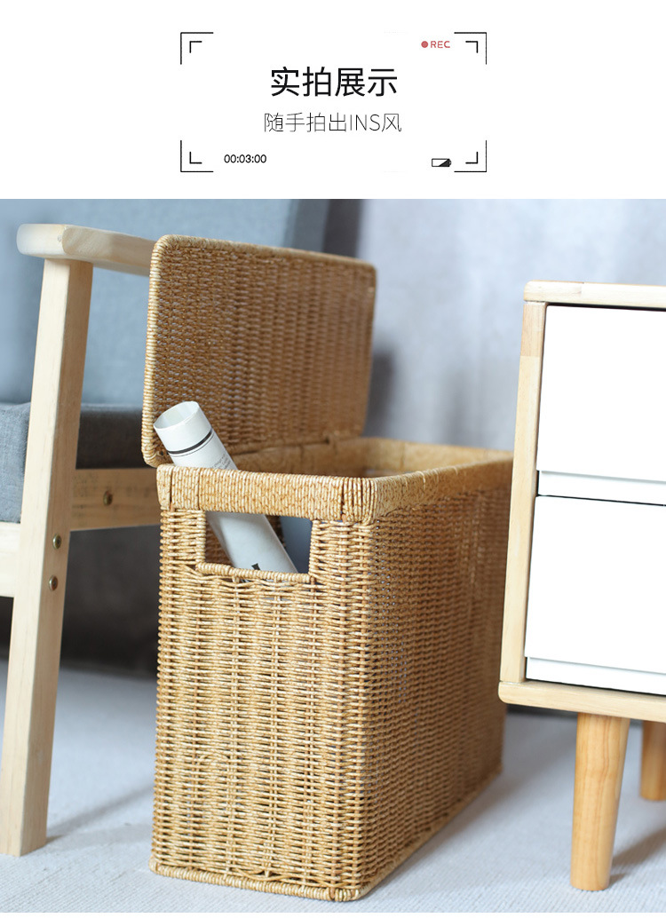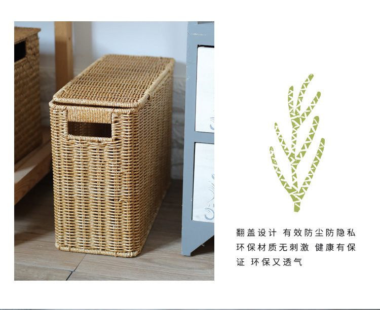 직사각형 수납 상자, 좁은 가장자리, 높고 깊은 상자, 뚜껑이 있는 모조 등나무 수납 바구니, 좁은 스트립스토어 가기