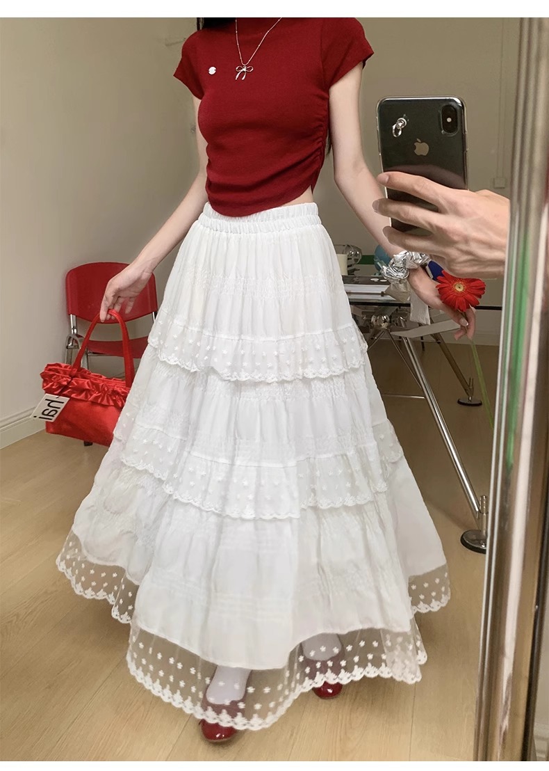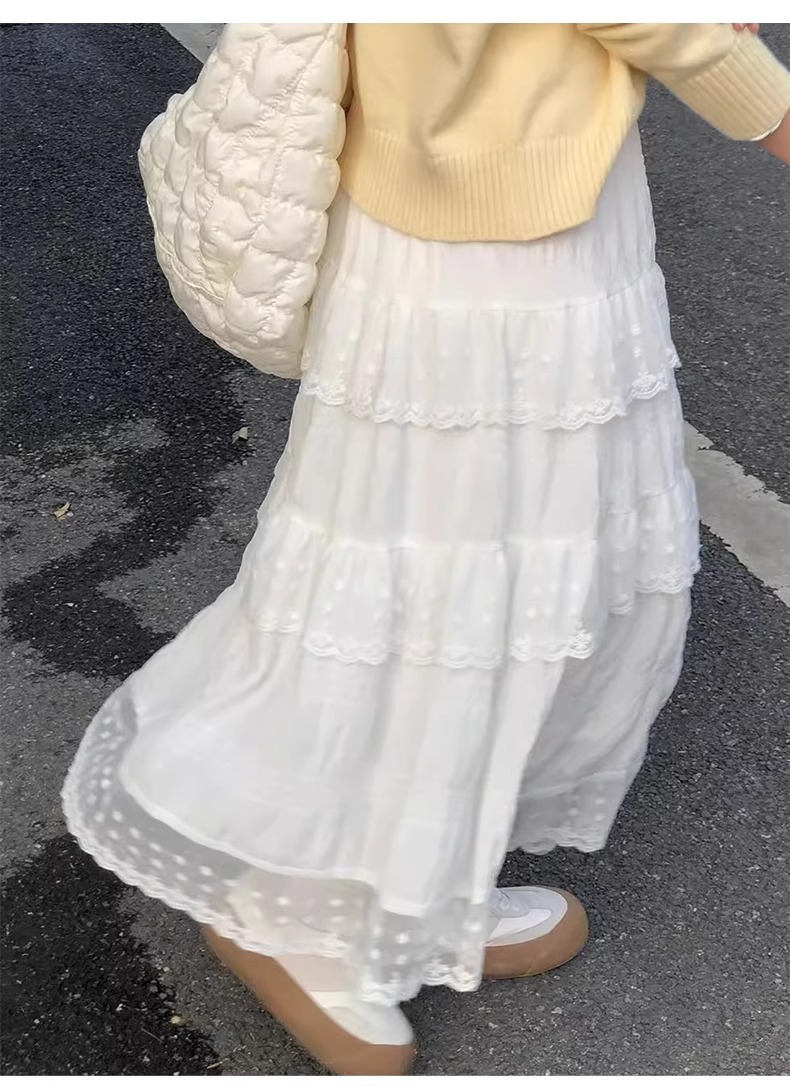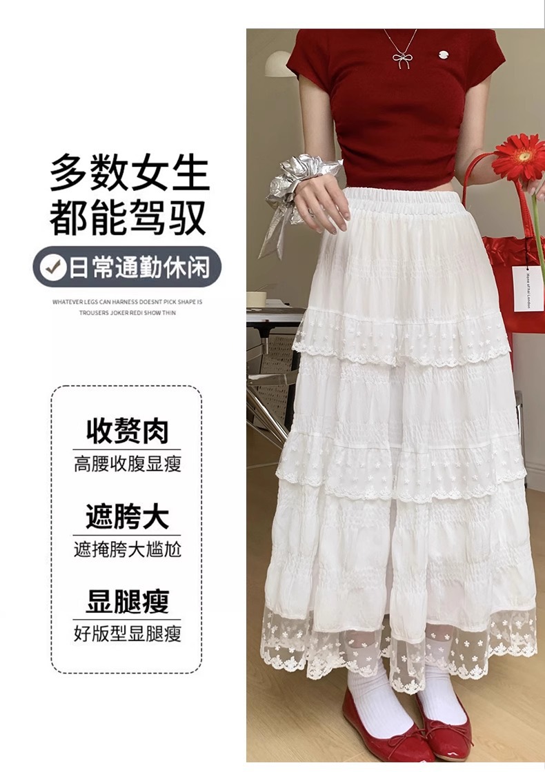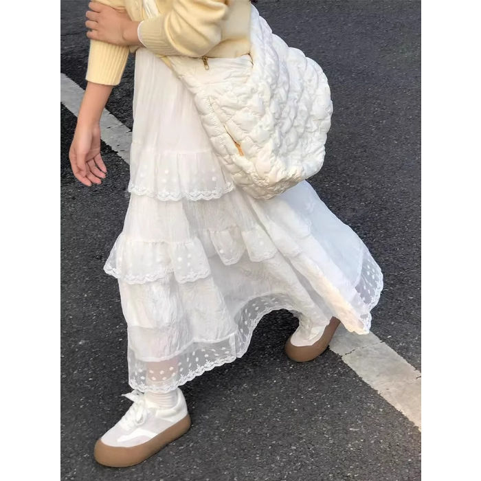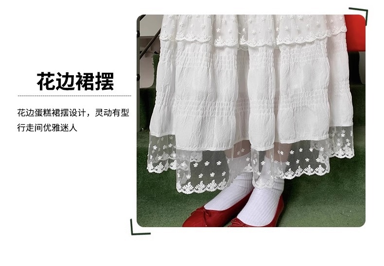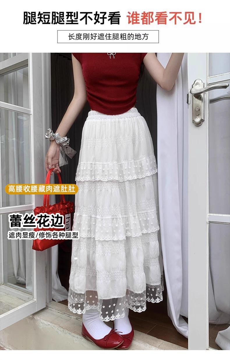 여자 흰색 스커트 봄 긴 치마 2025 새로운 어린이 a 라인 여름 큰 어린이 소녀 케이크 공주 스커트스토어 가기