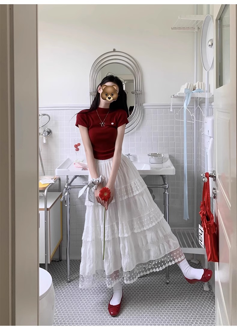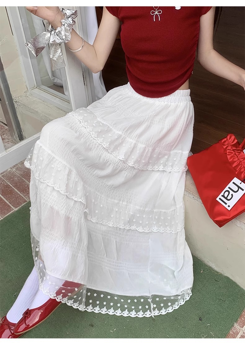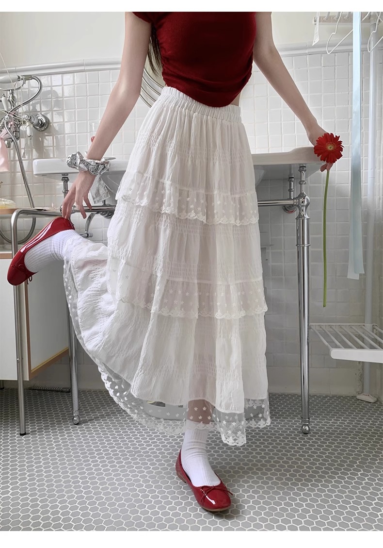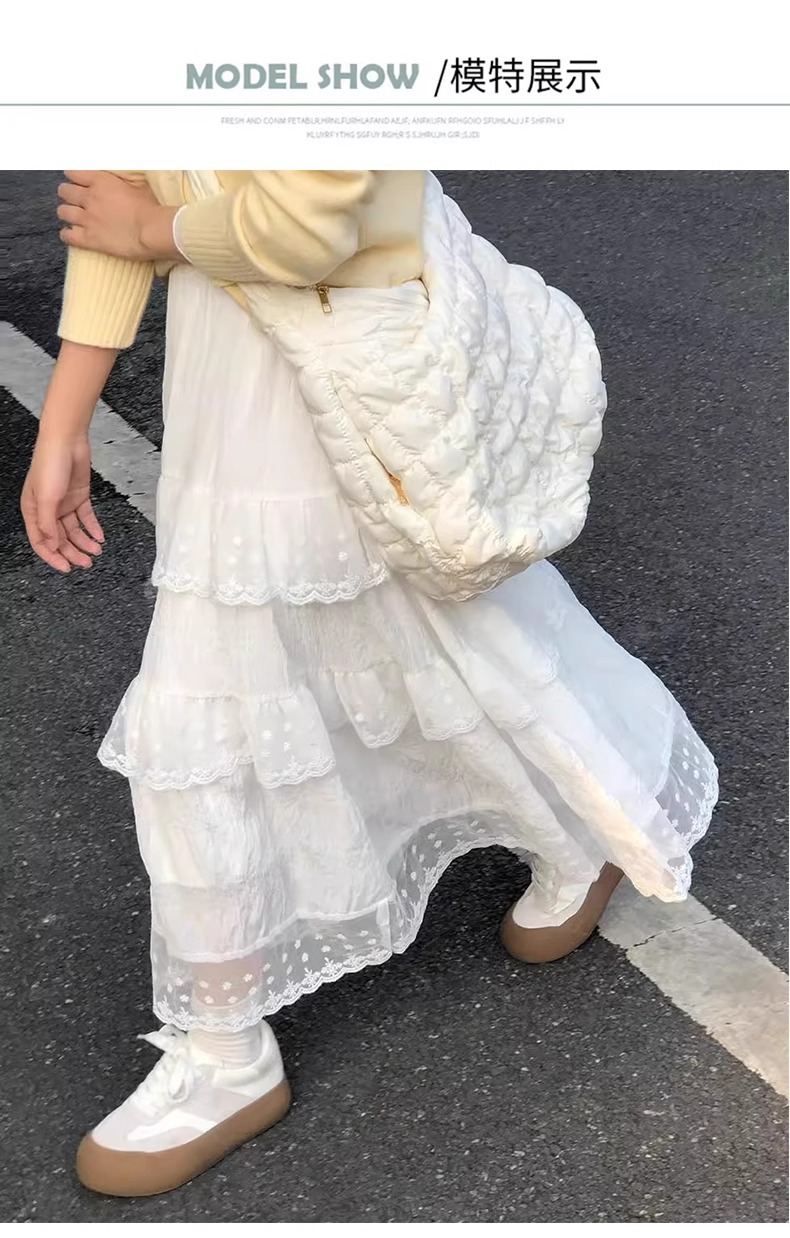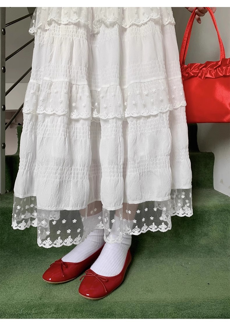 여자 흰색 스커트 봄 긴 치마 2025 새로운 어린이 a 라인 여름 큰 어린이 소녀 케이크 공주 스커트스토어 가기
