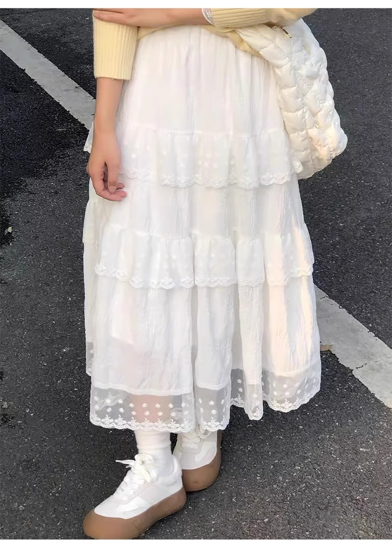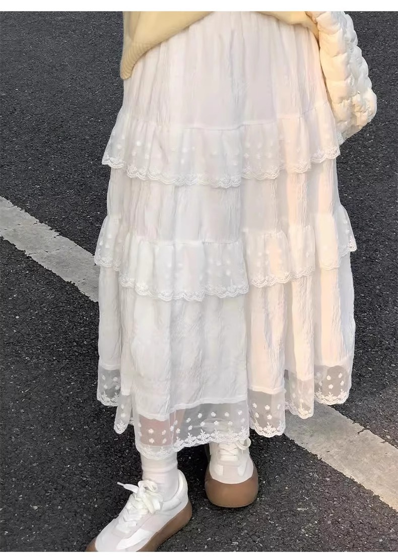 여자 흰색 스커트 봄 긴 치마 2025 새로운 어린이 a 라인 여름 큰 어린이 소녀 케이크 공주 스커트