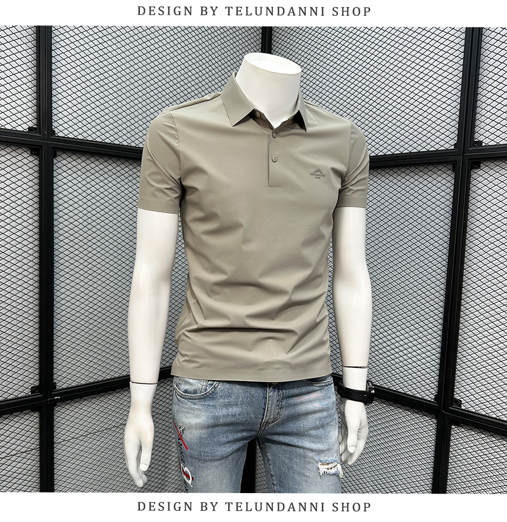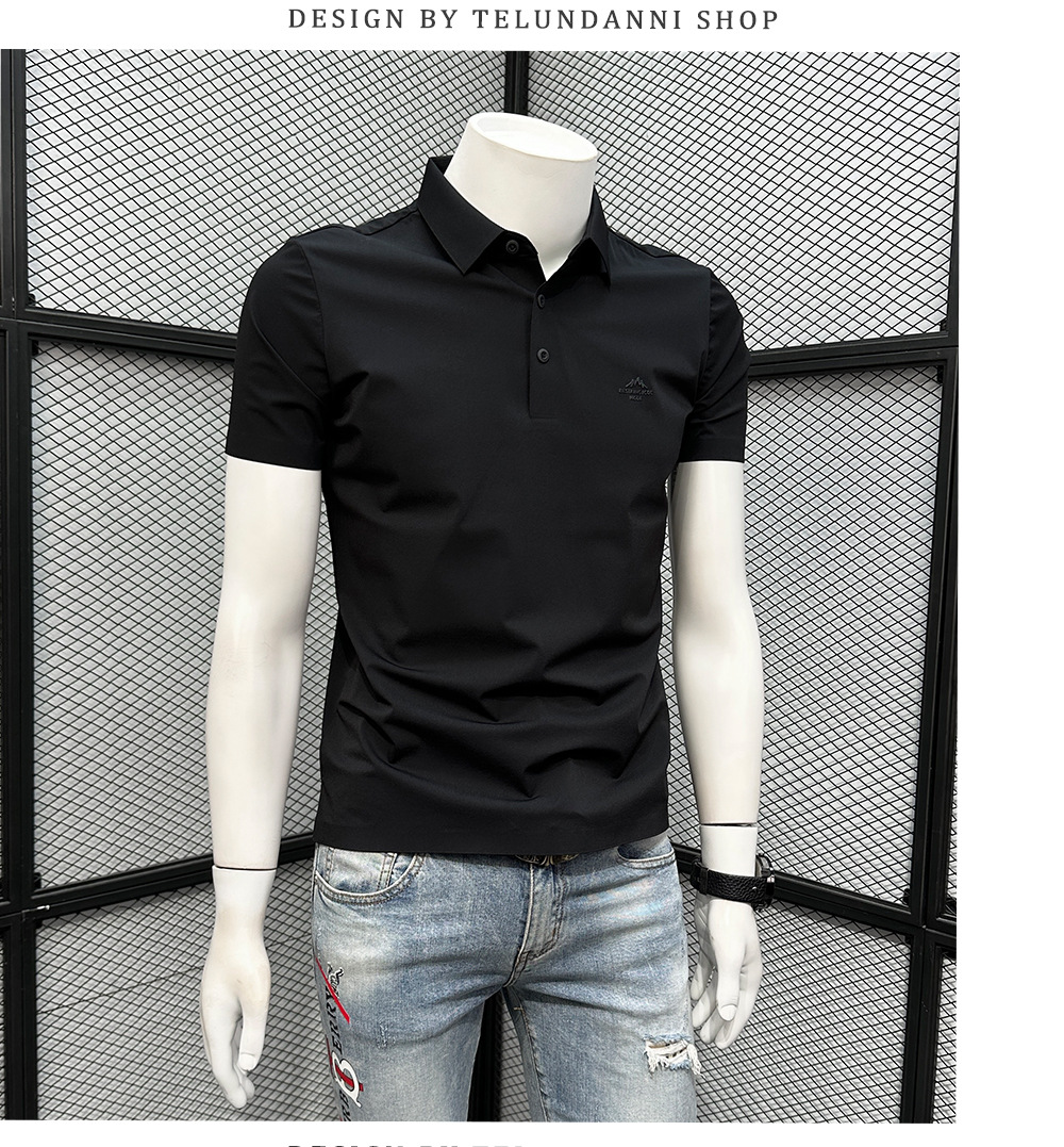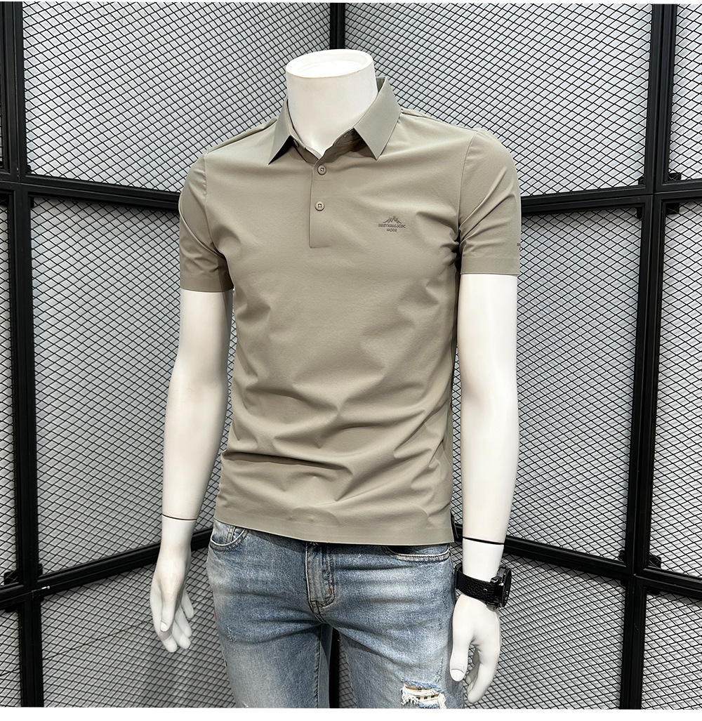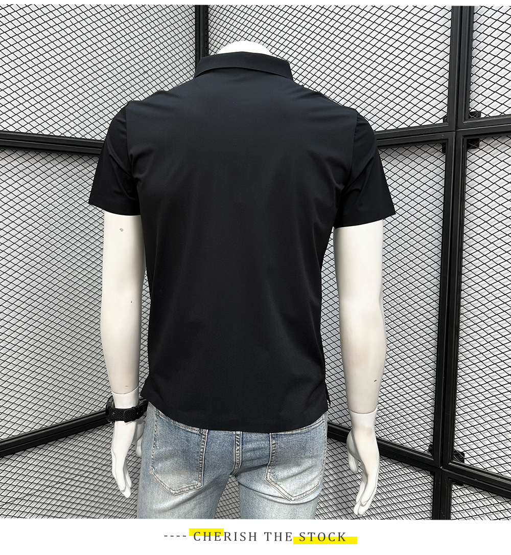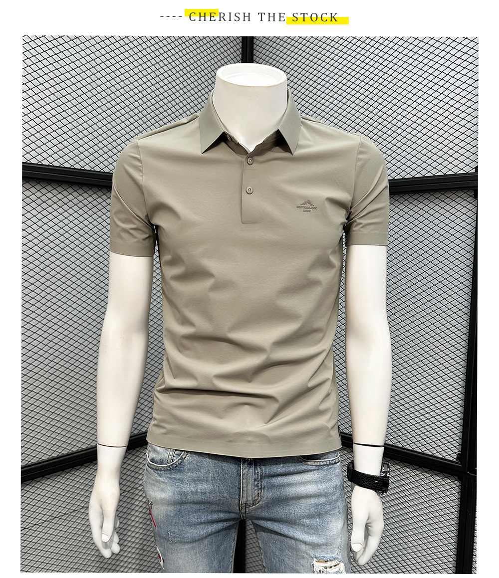 폴로 셔츠 남성용 반팔 티셔츠 여름 4방향 스트레치 심리스 아이스 실크 폴로 셔츠 슬림 라펠 칼라 패셔너블하고 캐주얼스토어 가기