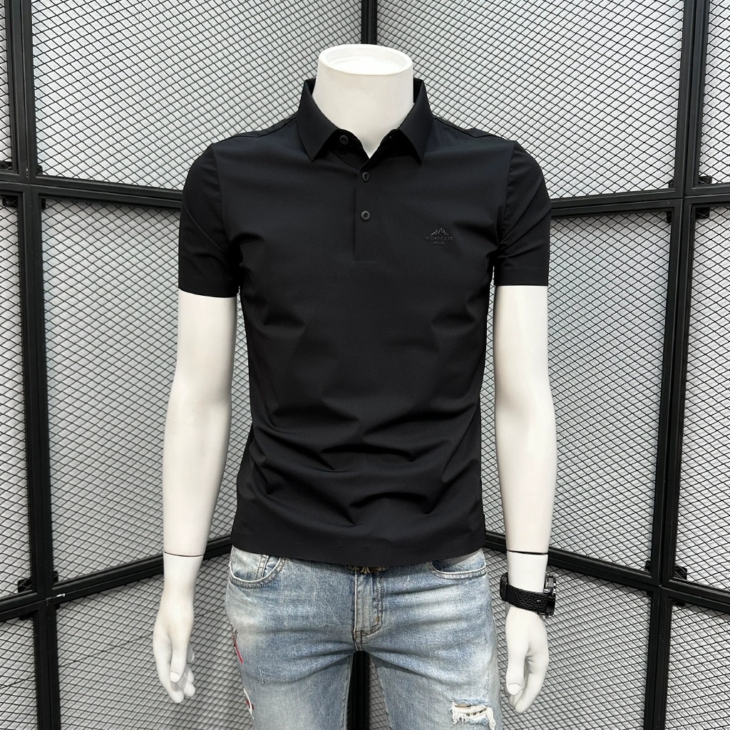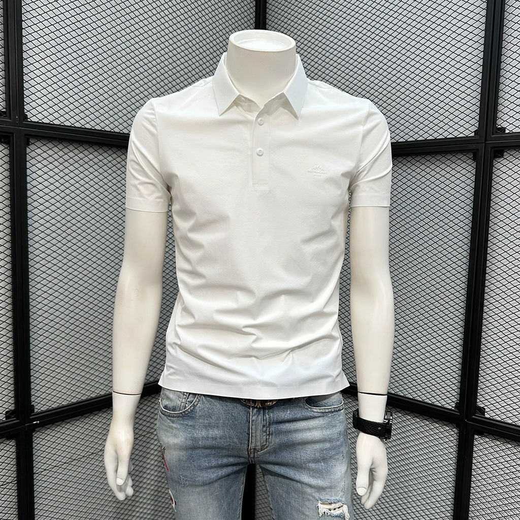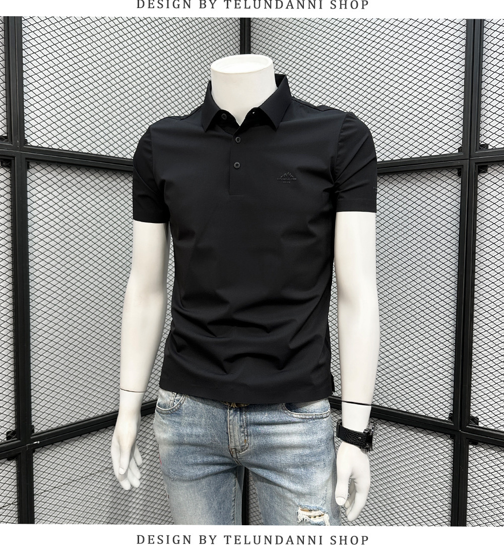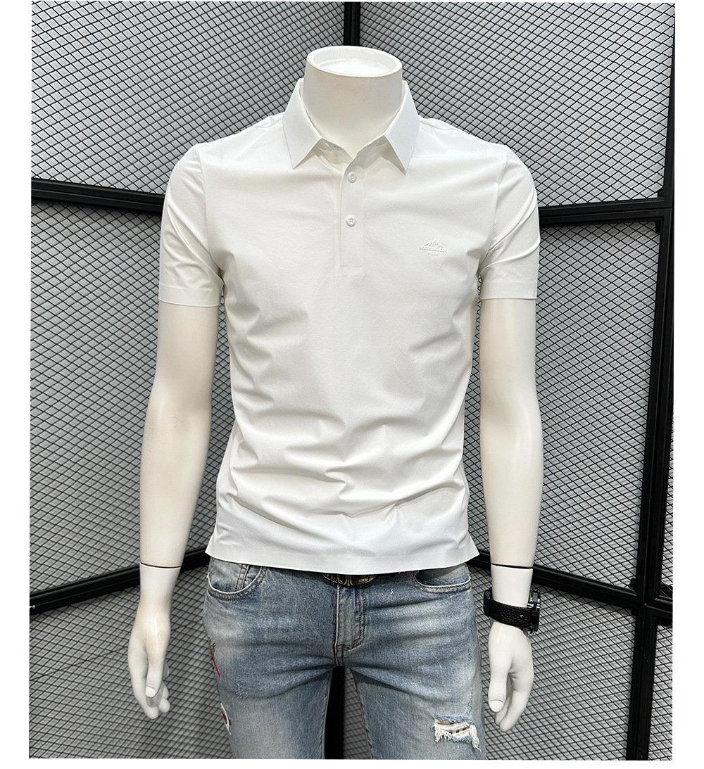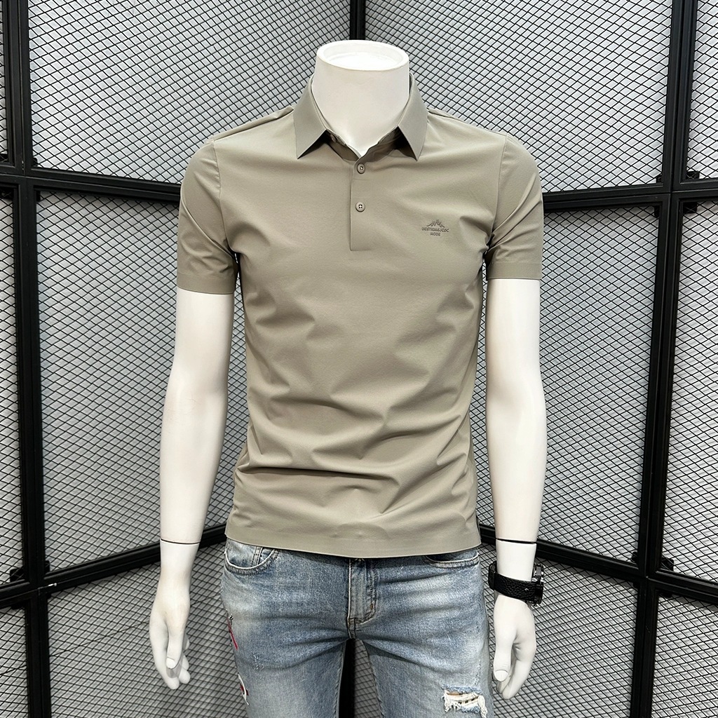 폴로 셔츠 남성용 반팔 티셔츠 여름 4방향 스트레치 심리스 아이스 실크 폴로 셔츠 슬림 라펠 칼라 패셔너블하고 캐주얼스토어 가기