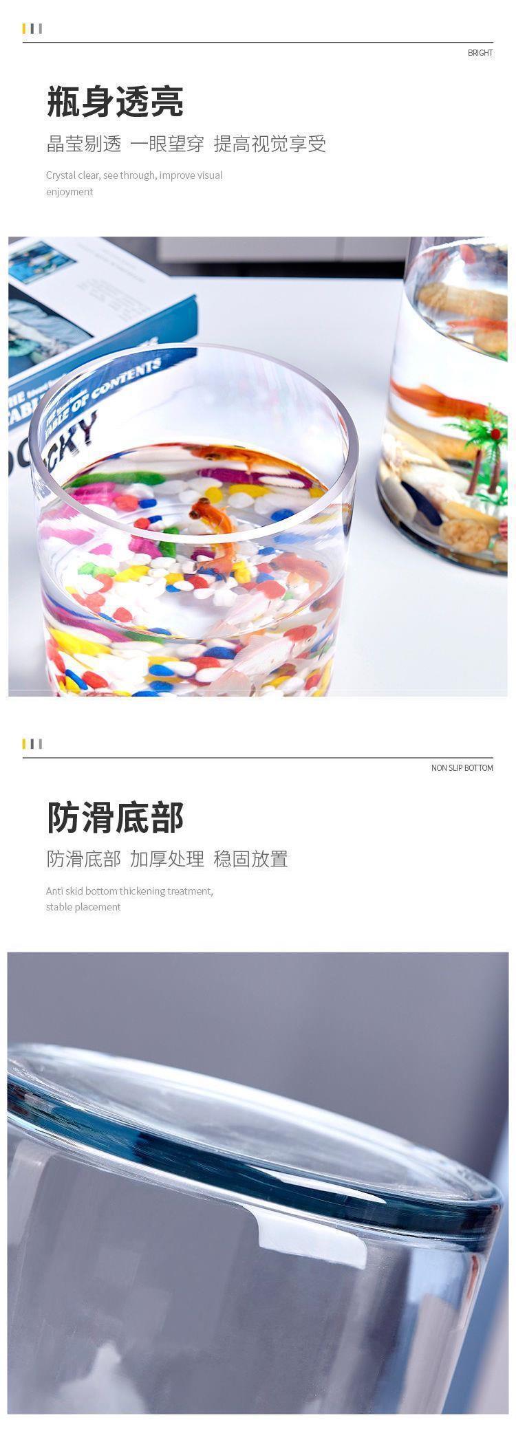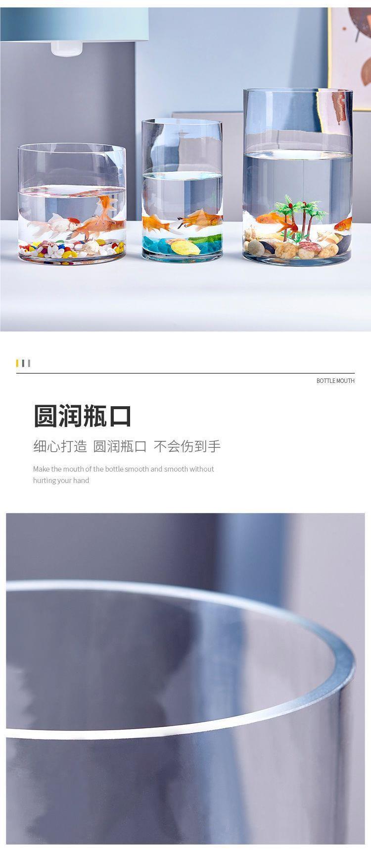 직선 유리 수족관 물고기 탱크 작은 원형 원통형 투명 크리 에이 티브 금붕어 탱크 홈 거실 사무실 조경