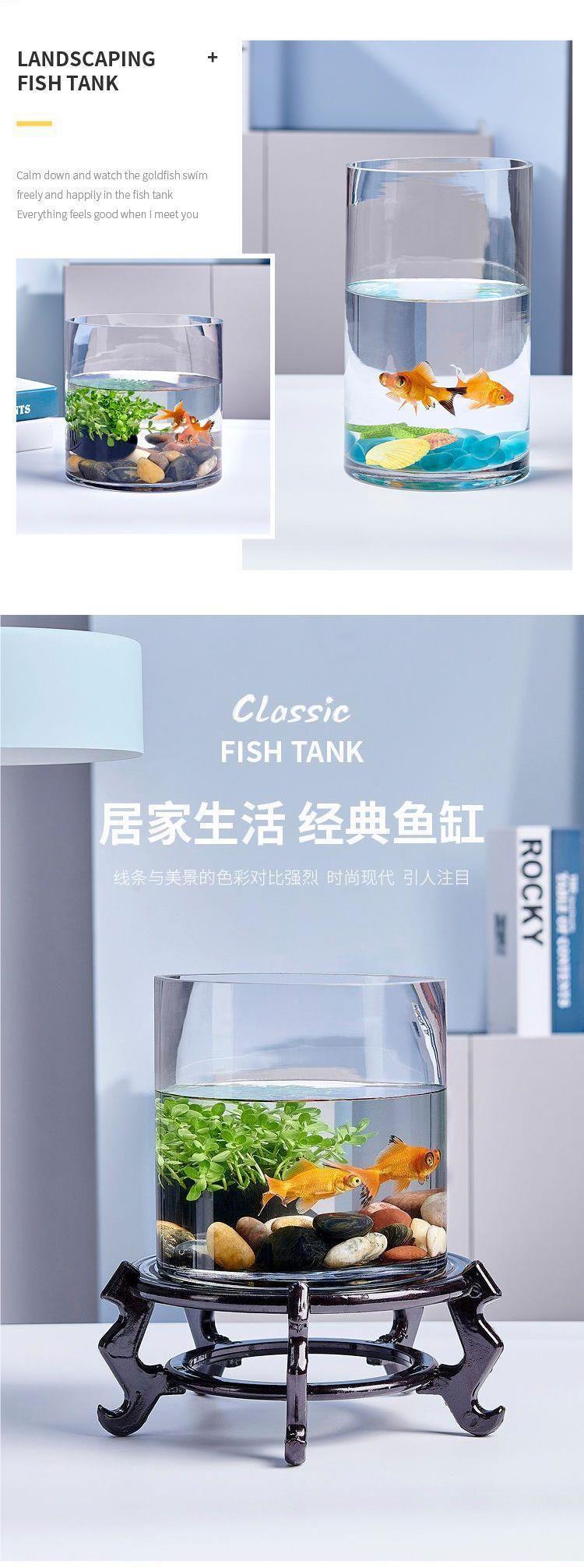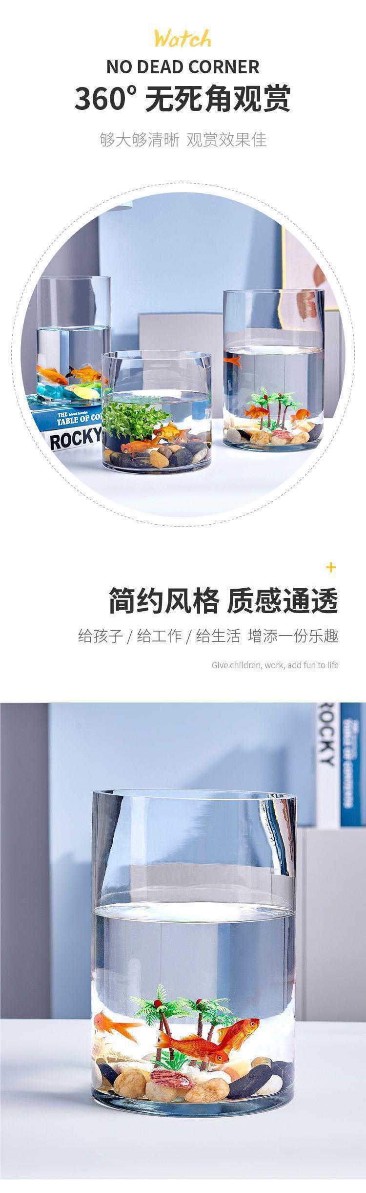 직선 유리 수족관 물고기 탱크 작은 원형 원통형 투명 크리 에이 티브 금붕어 탱크 홈 거실 사무실 조경스토어 가기