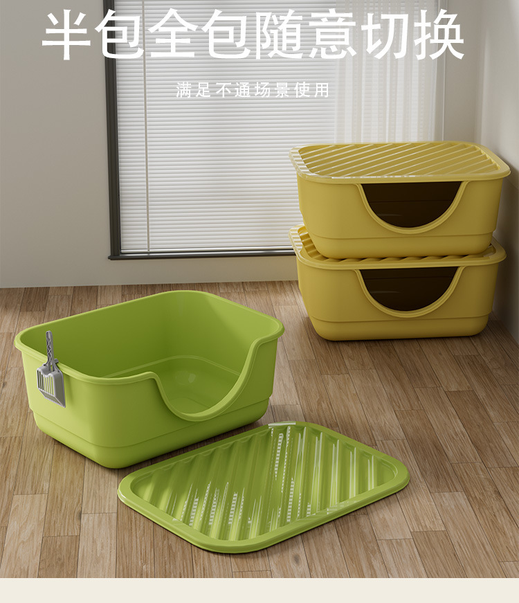 고양이 귀 모양의 반밀폐형 고양이 화장실, 개방형, 대형, 새끼 고양이를 위한 튀는 방지 기능, 고양이 케이지에 넣어 사용할 수 있음