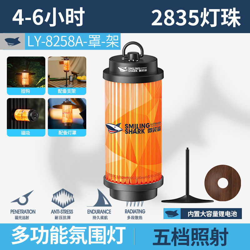 국경 간 새로운 스마일 상어 다기능 야외 조명 캠핑 램프 텐트 램프 긴 배터리 수명 USB 충전식 휴대용