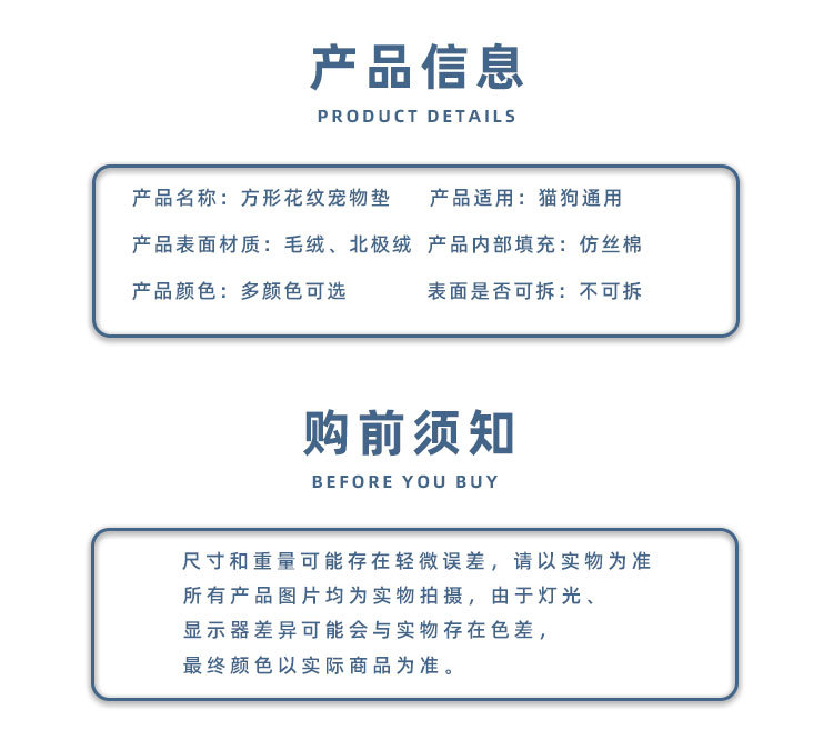 소프트 스퀘어 작은 개 애완 동물 둥지 플러시 개 침대 고양이 둥지 사계절 개 매트 중소형 개스토어 가기