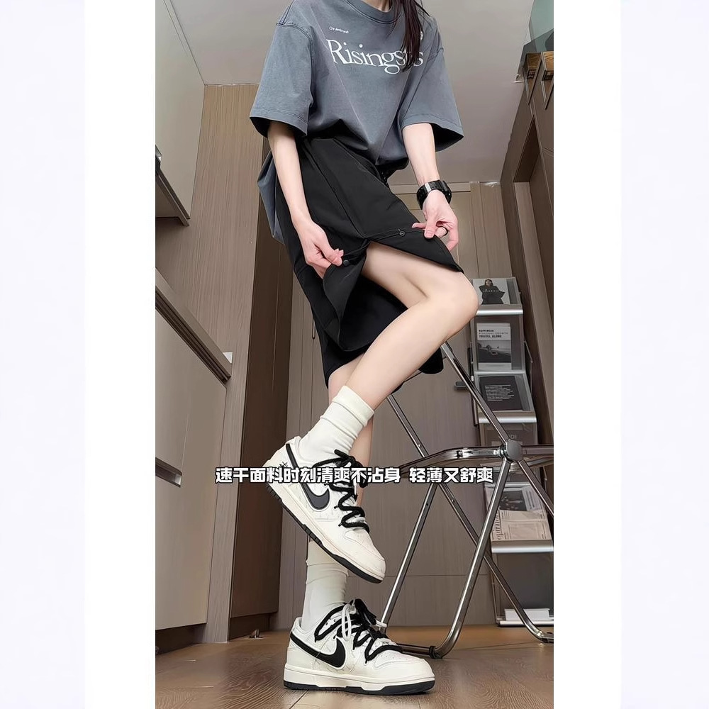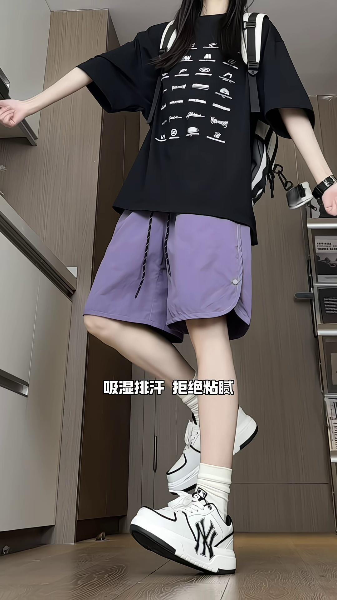 남성과 여성을 위한 보라색 도파민 속건성 5부 바지 여름 측면 단추 카고 반바지 얇은 커플 비치 바지스토어 가기