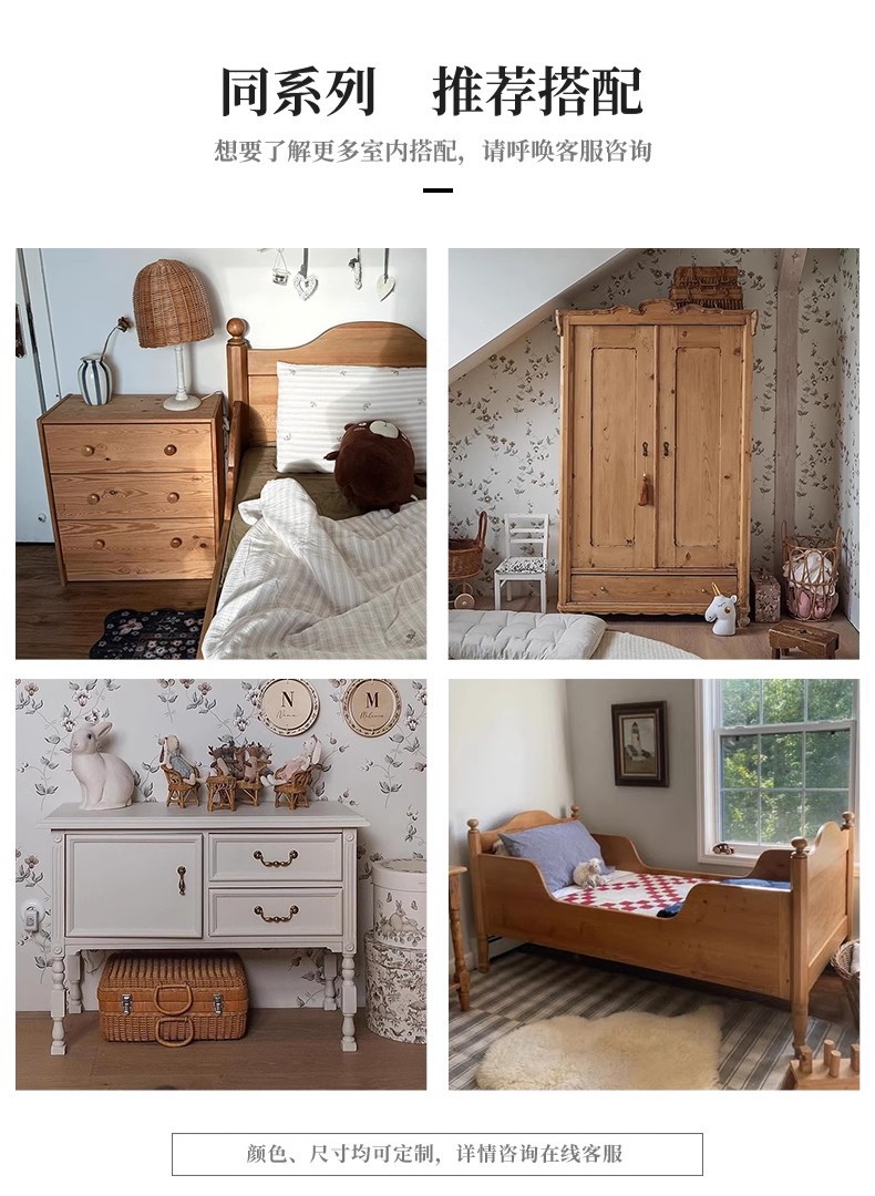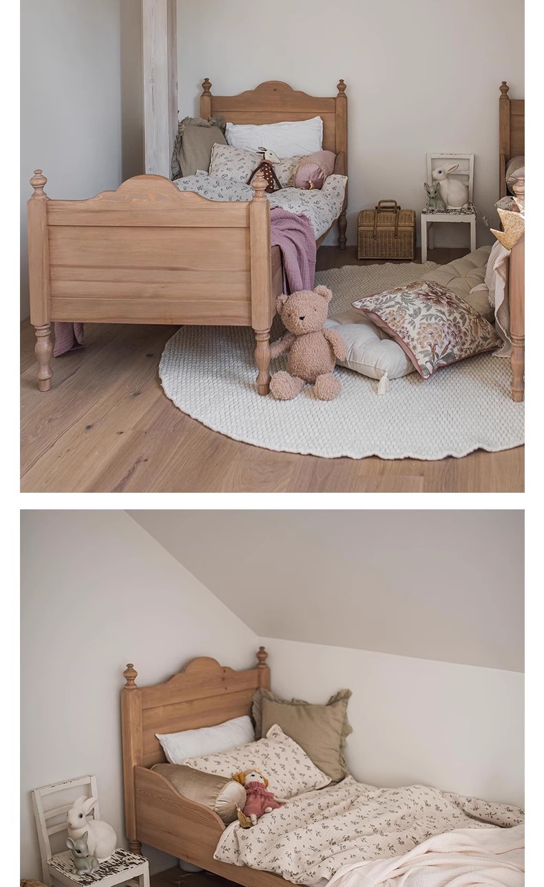 원목 난간 어린이 침대 프랑스 빈티지 스타일 소형 아파트 썰매 공주 침대 맞춤형 다기능스토어 가기