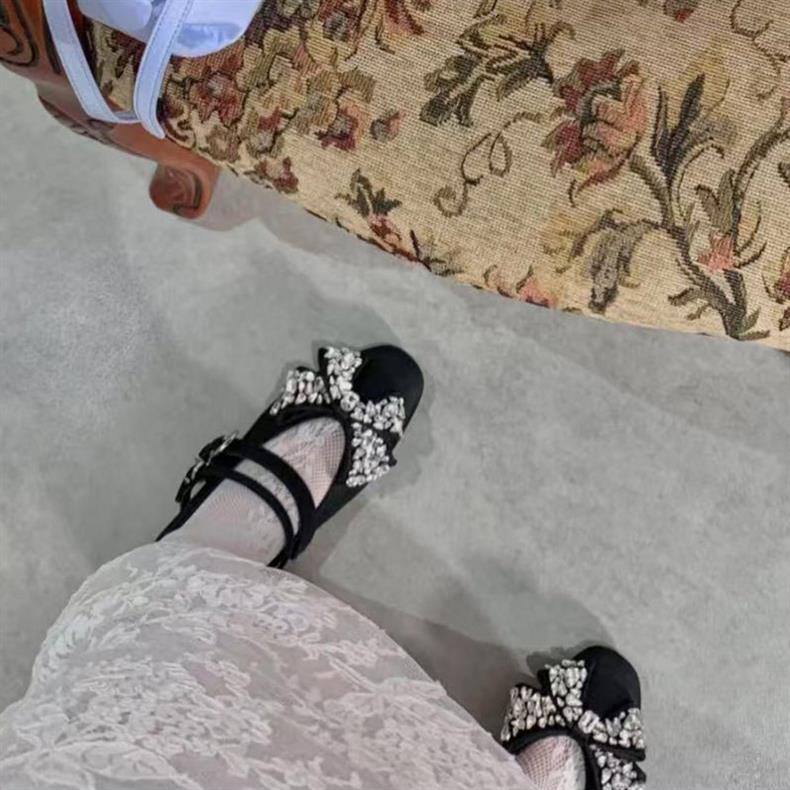 루스의 같은 스타일 라인스톤 데님 보우 슈즈 여성 2025 신상 프렌치 발레 플랫 슈즈 메리 제인 슈즈스토어 가기