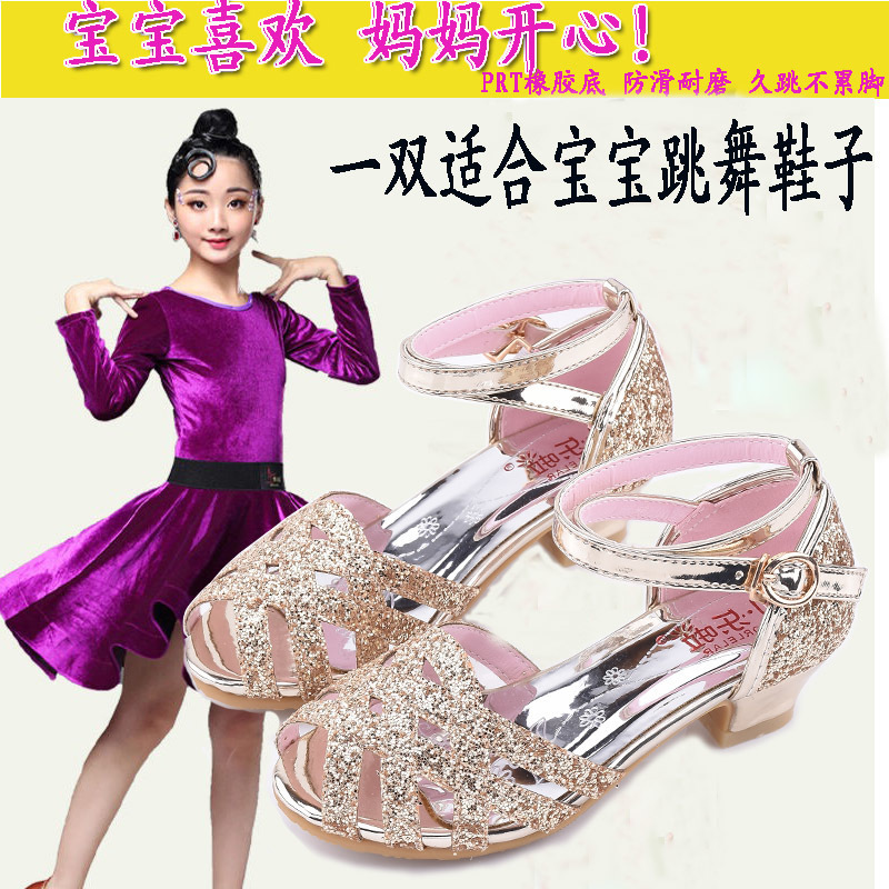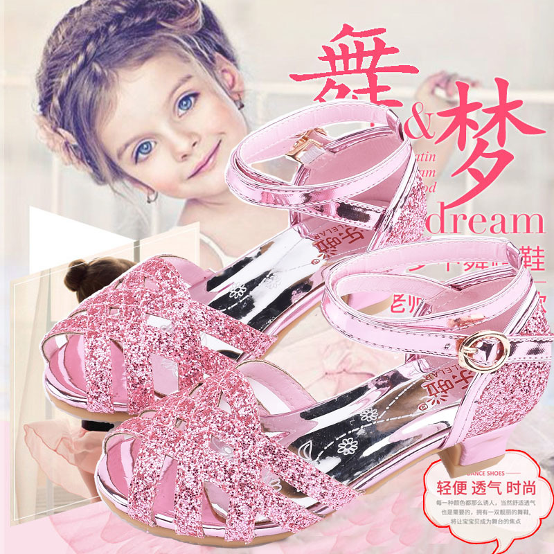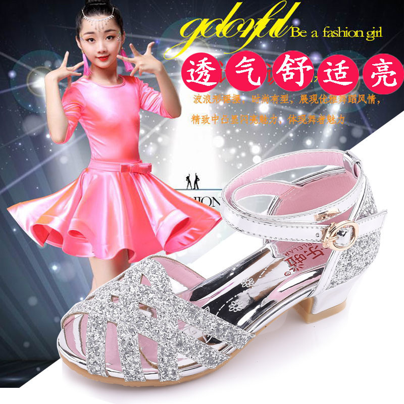 새로운 여자 하이힐 샌들 공주 신발 밝은 라인 석 여름 어린이 샌들 라틴 댄스 신발 패션쇼 패션 신발