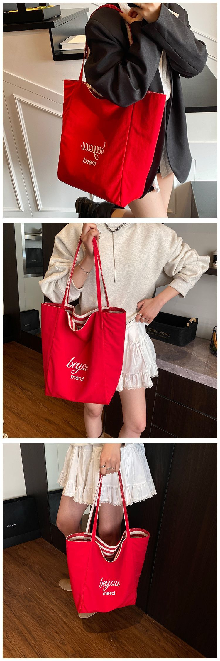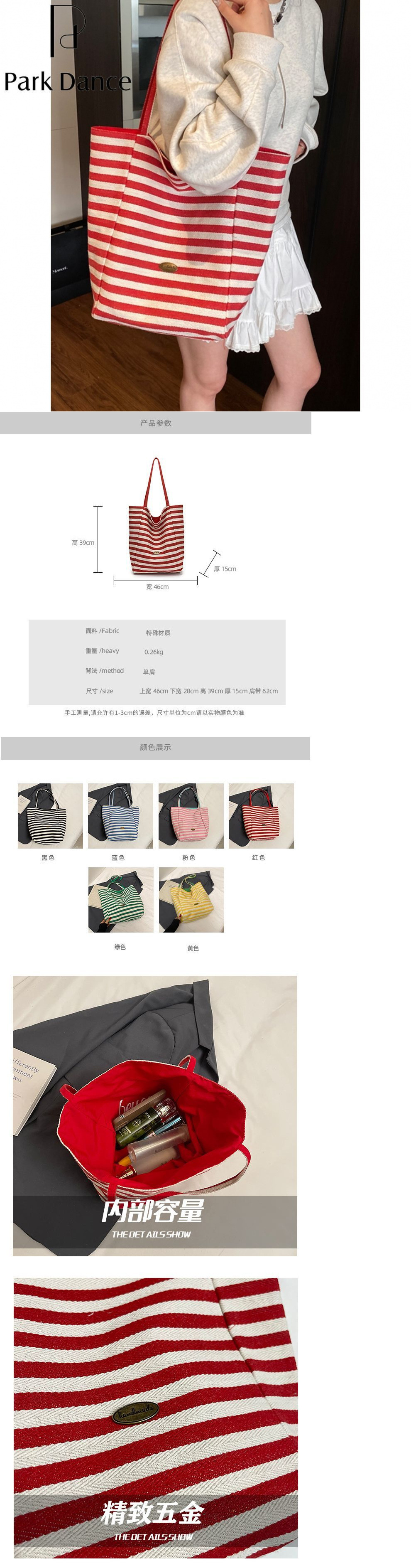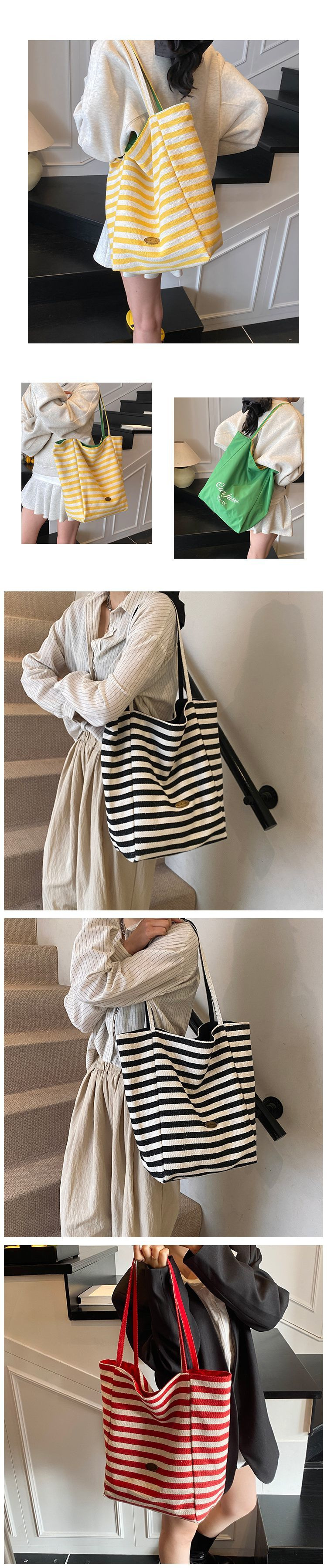 스트라이프 캔버스 가방 한국어 양면 게으른 토트 학생 대용량 캐주얼 숄더백