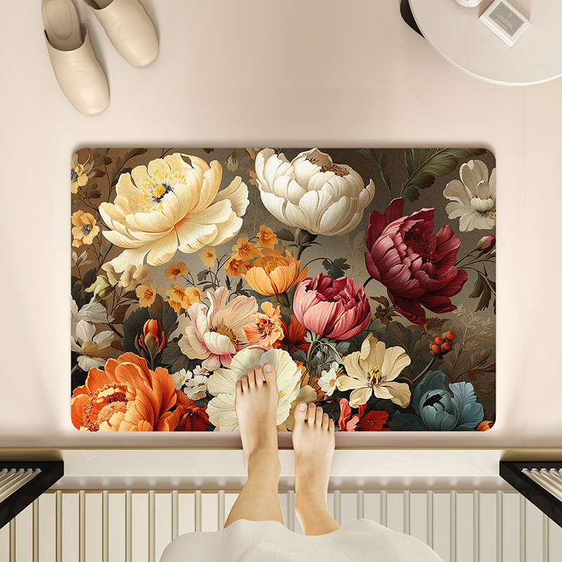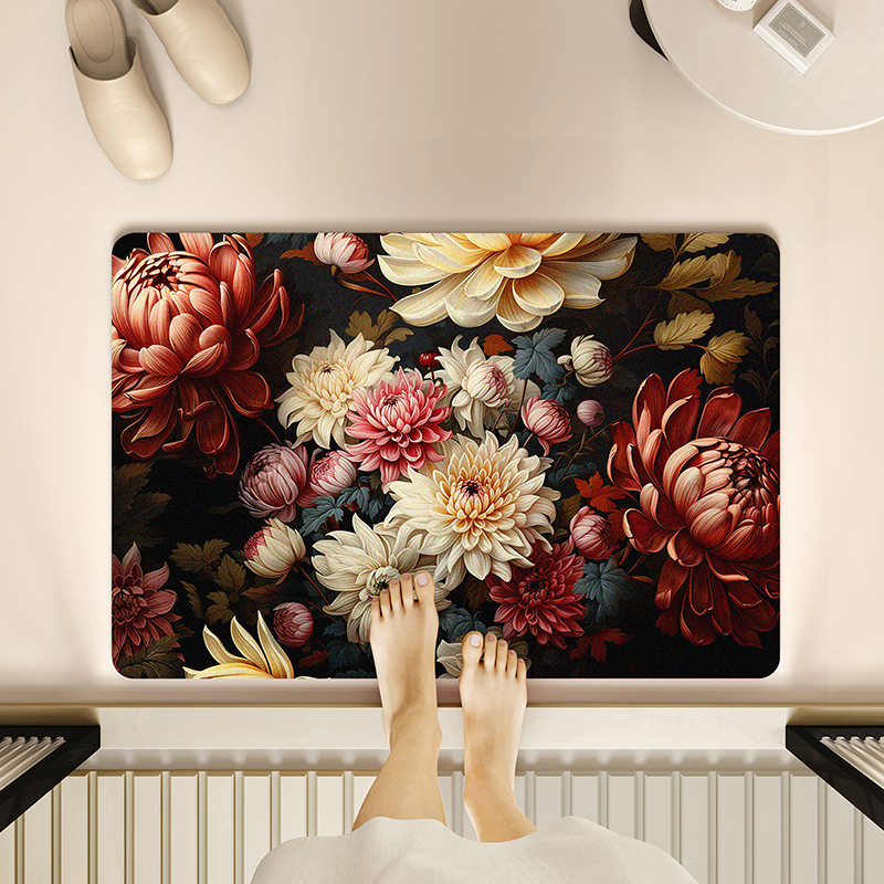 3D 규조토 진흙 욕실 바닥 매트 꽃 흡수성 매트 입구 문 욕실 문 빠른 건조 미끄럼 방지 매트 도매