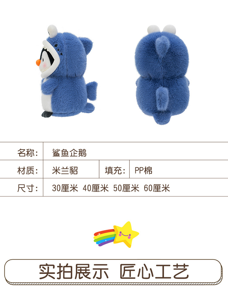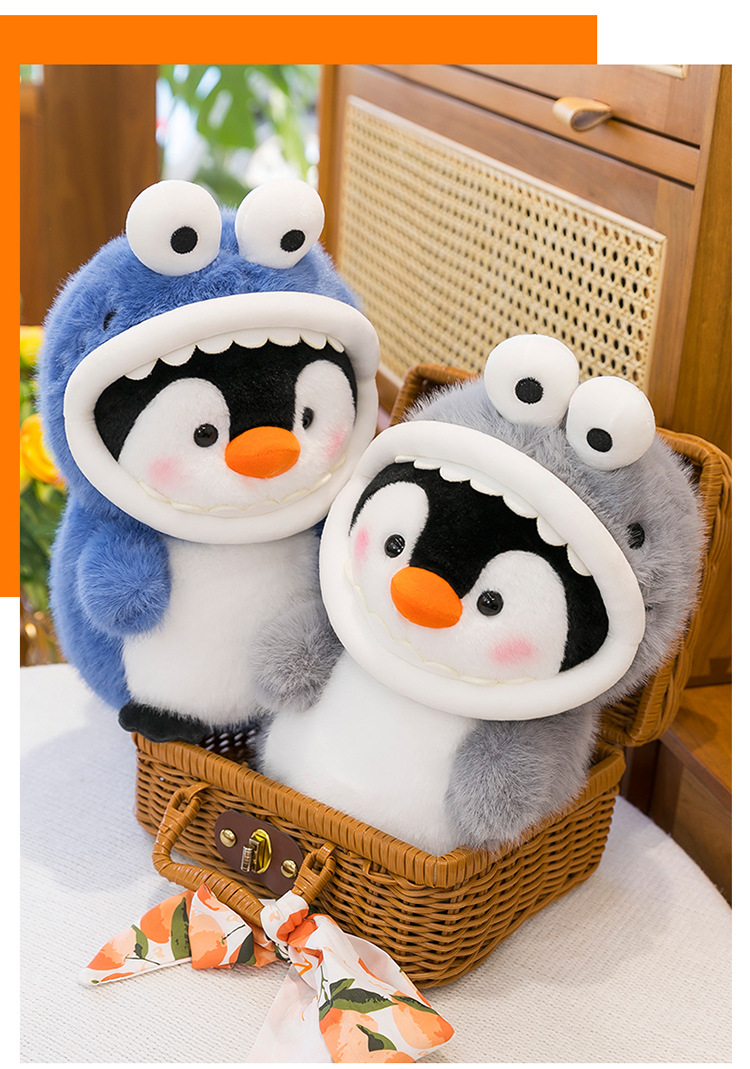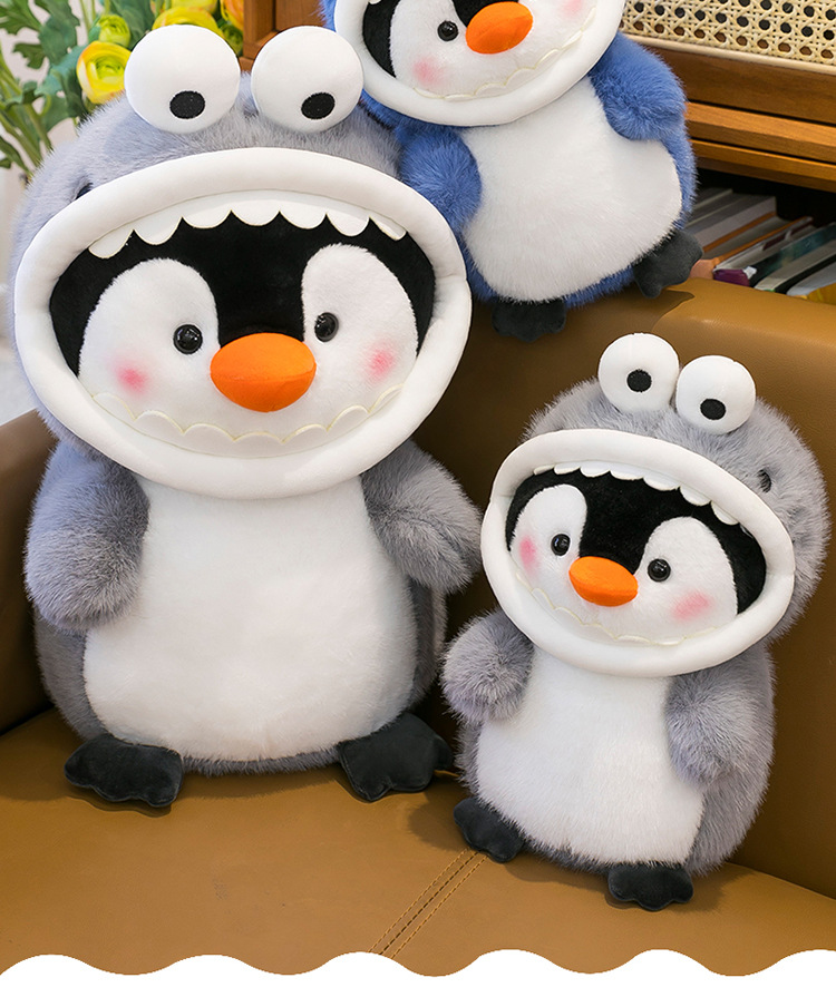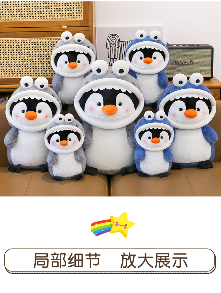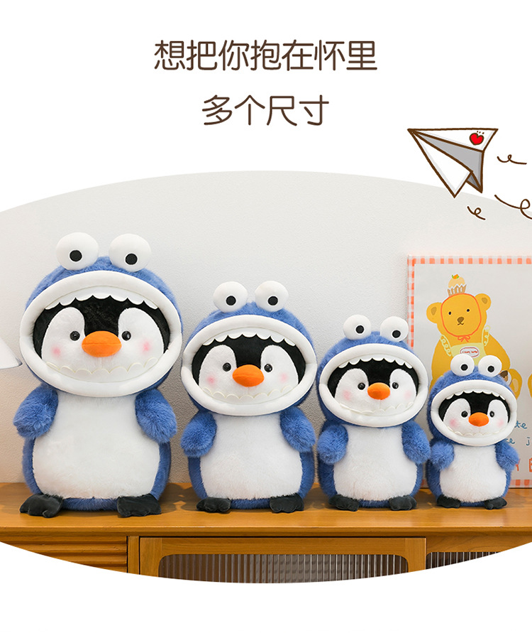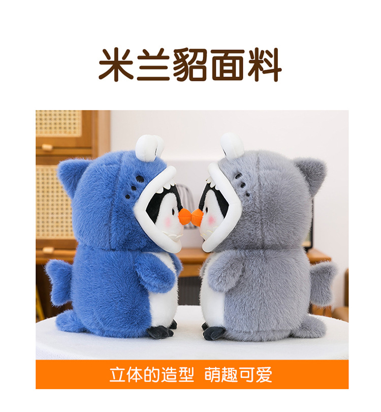 국경 간 귀여운 플러시 변장 상어 변환 펭귄 아기 인형 이벤트 선물 선물 플러시 인형 도매스토어 가기
