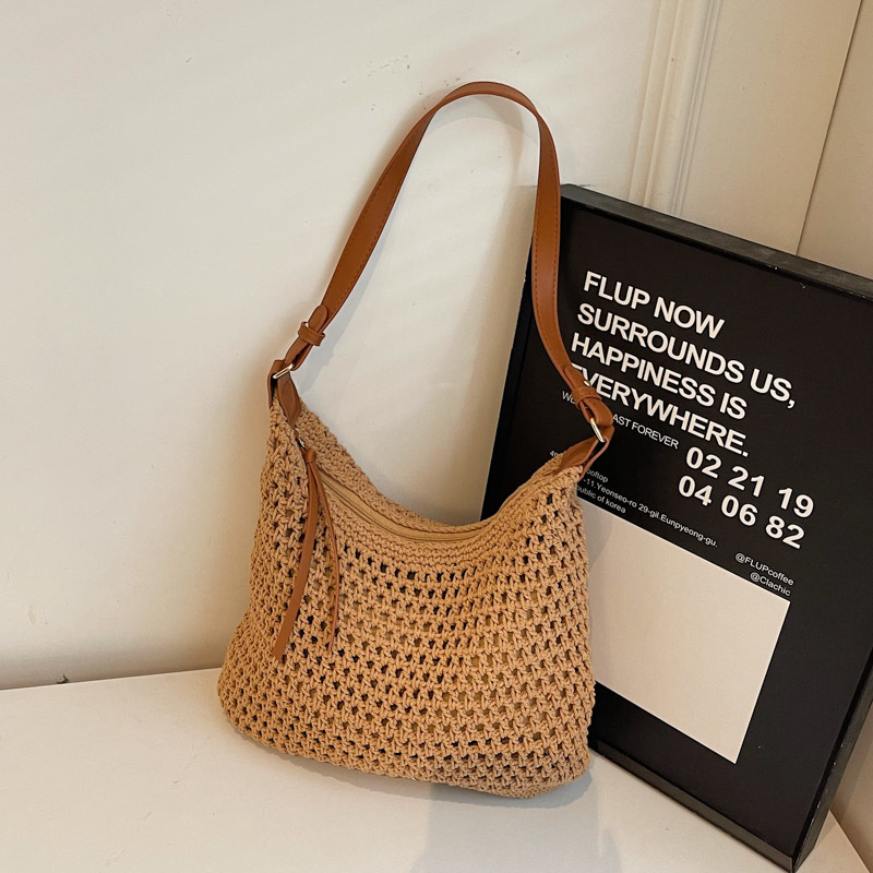 Benseman 손으로 짠 가방 여성의 새로운 해변 휴가 숄더백 대용량 토트 백 인기 뜨개질 가방스토어 가기