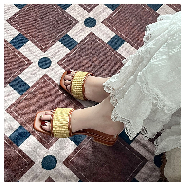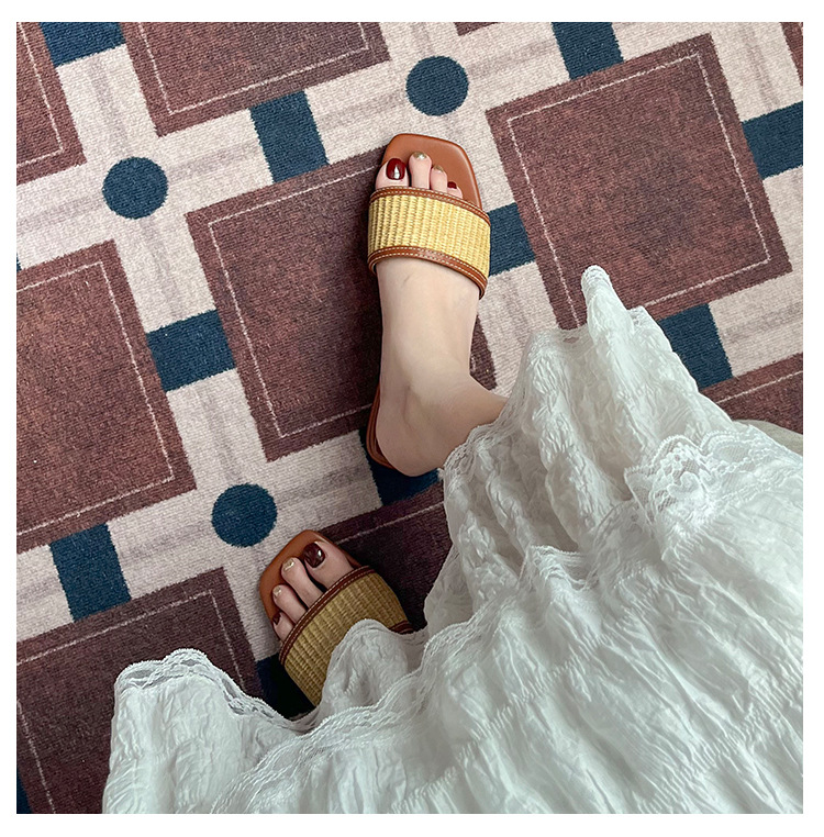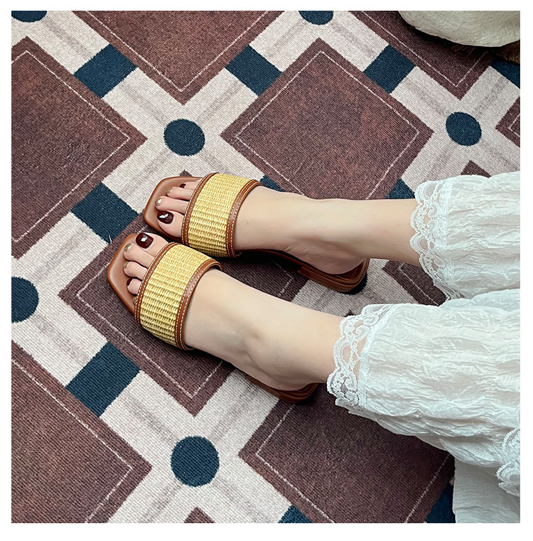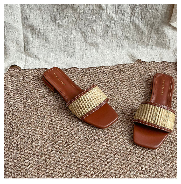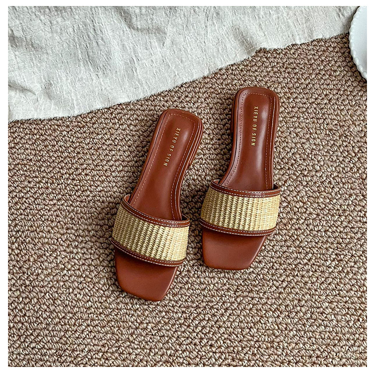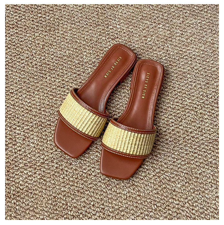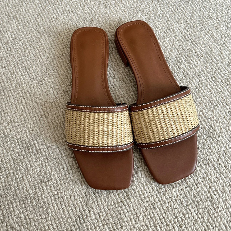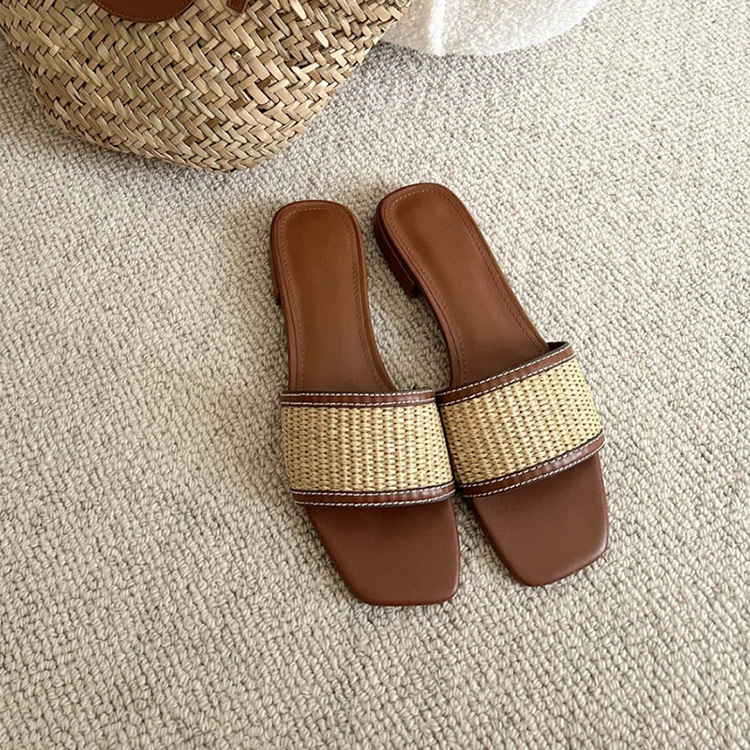 여성을위한 리넨 밀짚 슬리퍼 여름 2025 새로운 겉옷 플랫 바닥 해변 휴가 로마 샌들