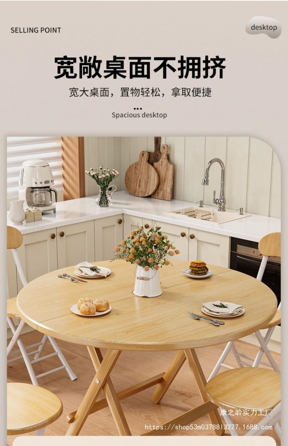 • 원래 색상 두꺼워진 80cm 원형 표면 [설치가 필요 없고 보관이 용이함] 테이블 높이 72CM