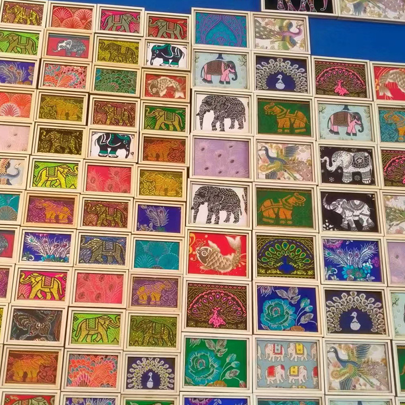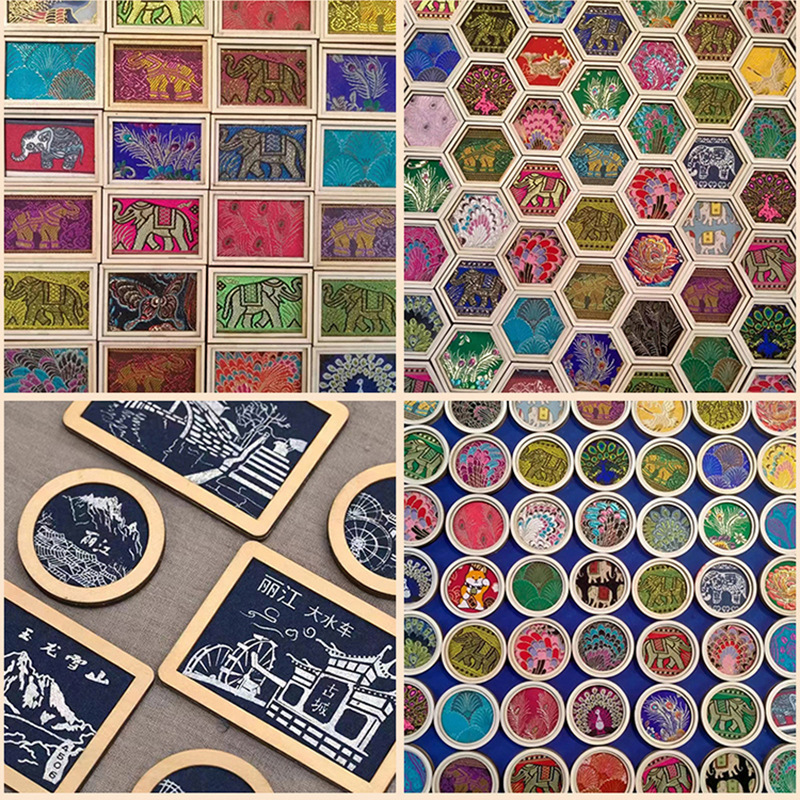 냉장고 자석 Dai 자수 DIY 타이 염색 원형 액세서리 냉장고 자석 액세서리 나무 조각 손으로 수 놓은 액자스토어 가기