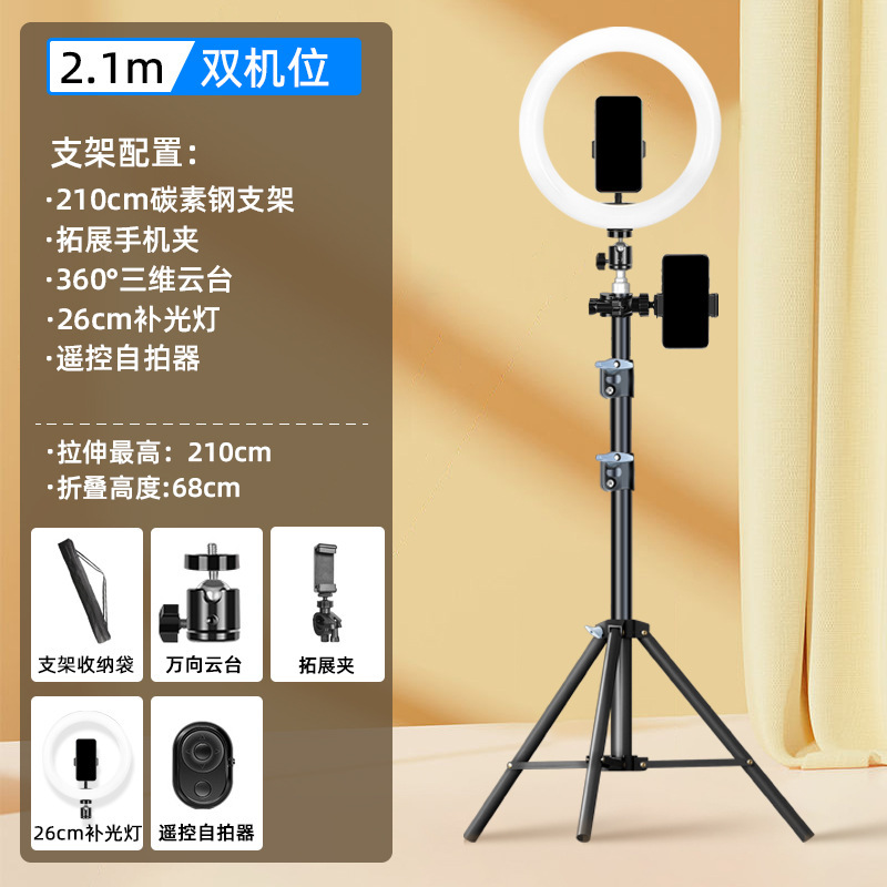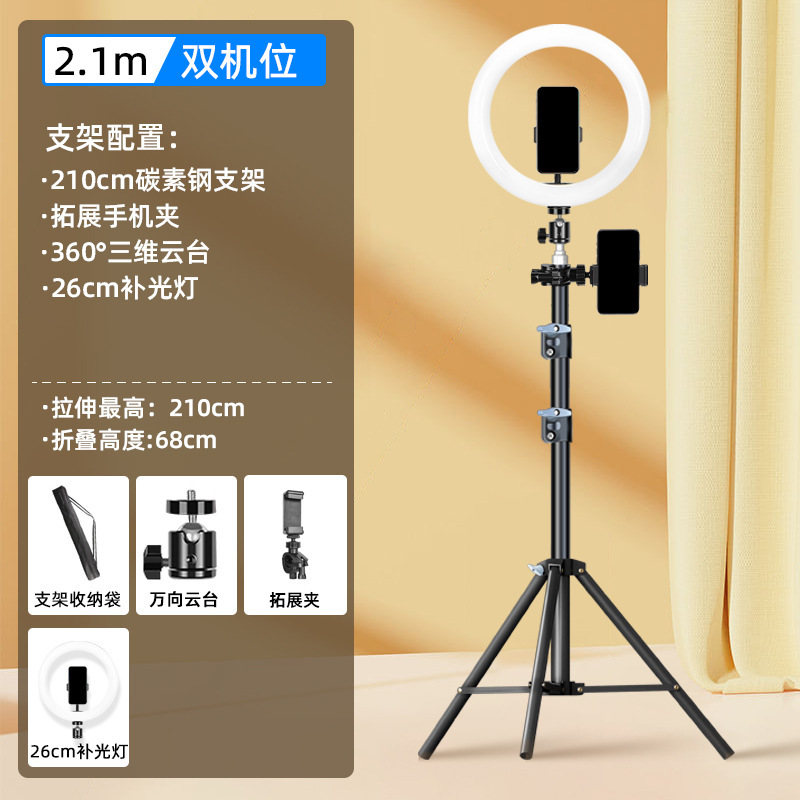 탄소강 뷰티 휴대 전화 전문 새로운 도매 휴대 전화 라이브 방송 브래킷 필 라이트 멀티 스트랩 듀얼 기계스토어 가기