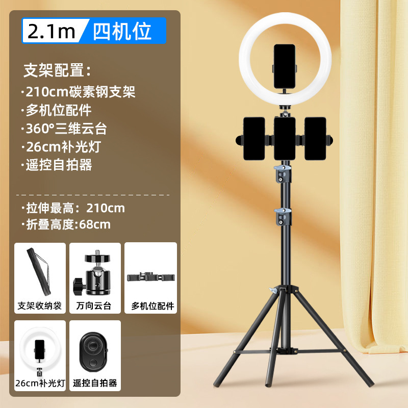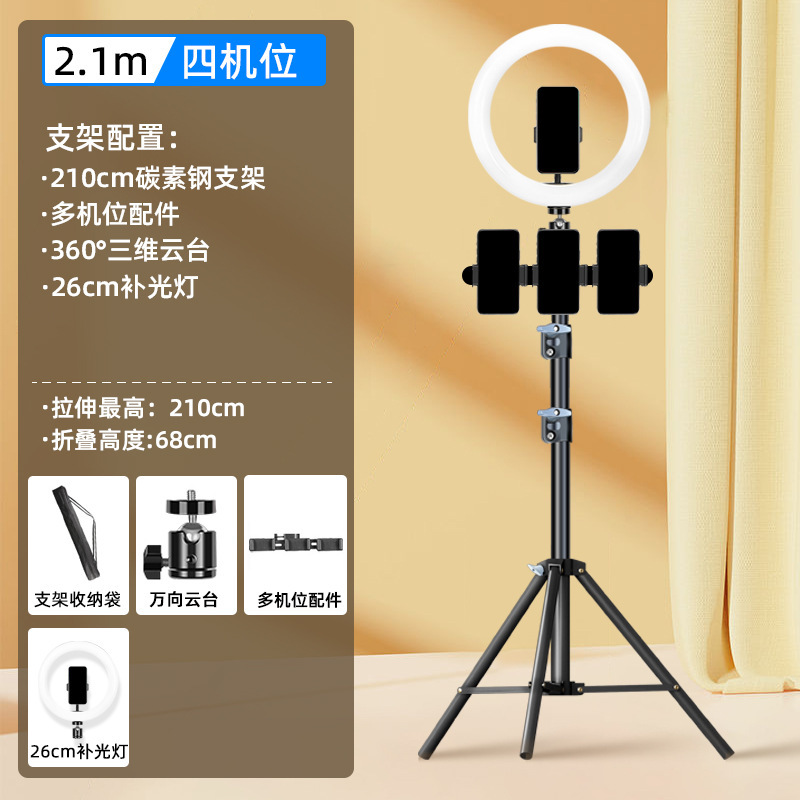 탄소강 뷰티 휴대 전화 전문 새로운 도매 휴대 전화 라이브 방송 브래킷 필 라이트 멀티 스트랩 듀얼 기계
