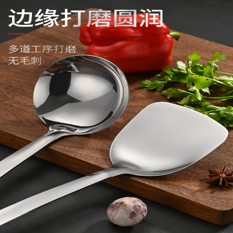 단단한 나무 손잡이, 두꺼운 스테인레스 스틸 대형 수프 스푼, 긴 손잡이 화상 방지 스푼, 가정용 수프 및 죽 요리 스푼 세트