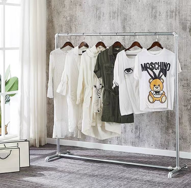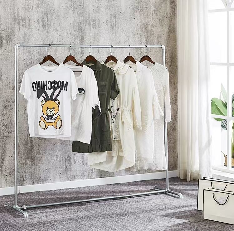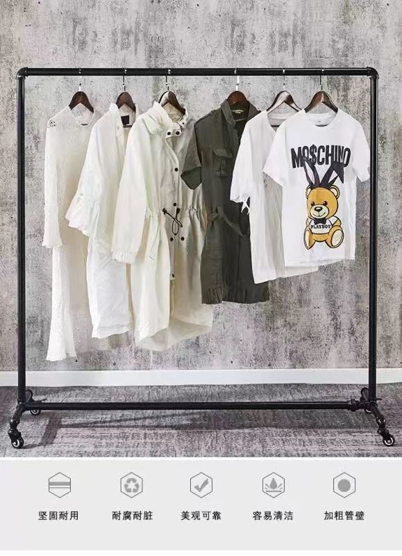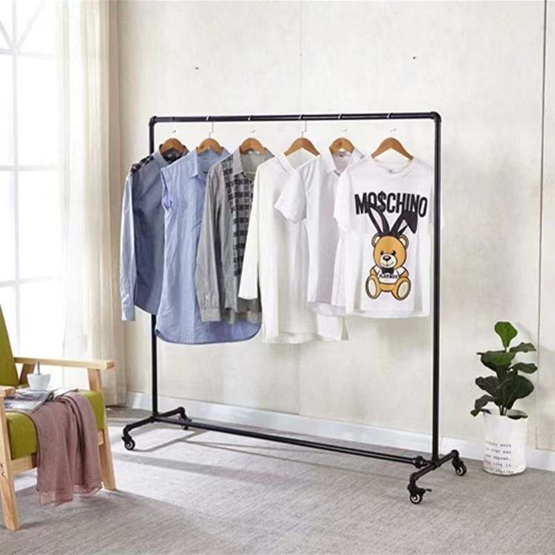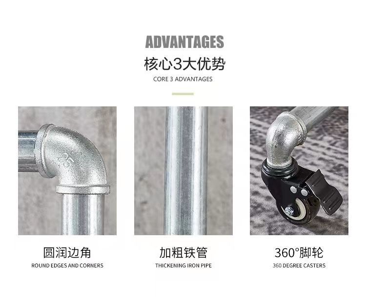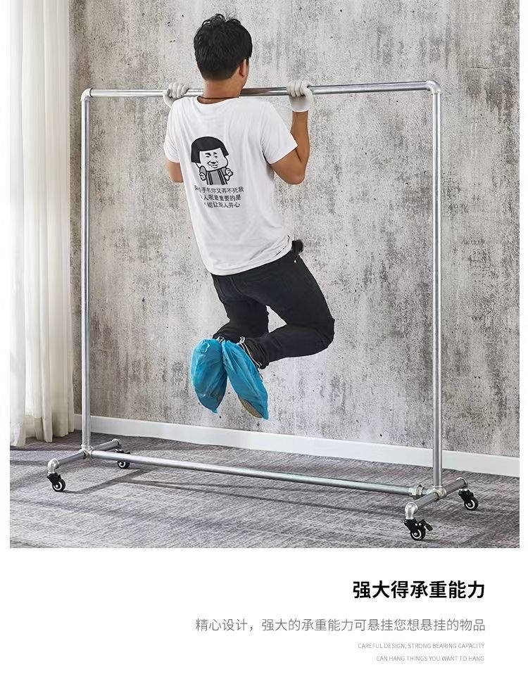 바퀴가 달린 의류 이중층 수도관 디스플레이 랙 발코니 스톨 야외 바닥걸이 옷걸이 아연 도금 옷걸이 탈착식스토어 가기
