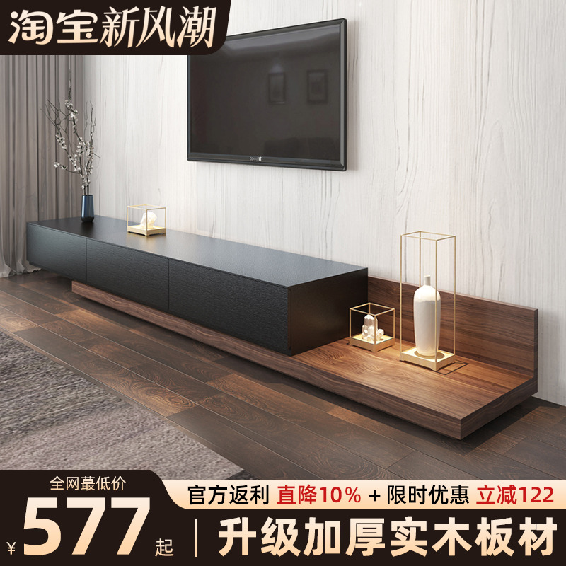 북유럽 TV 캐비닛 거실 홈 2024 새로운 작은 아파트 단단한 나무 개폐식 바닥 TV 캐비닛 커피 테이블 조합
