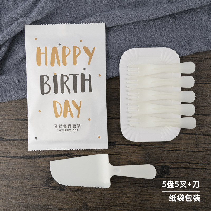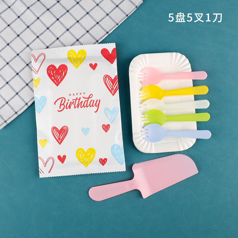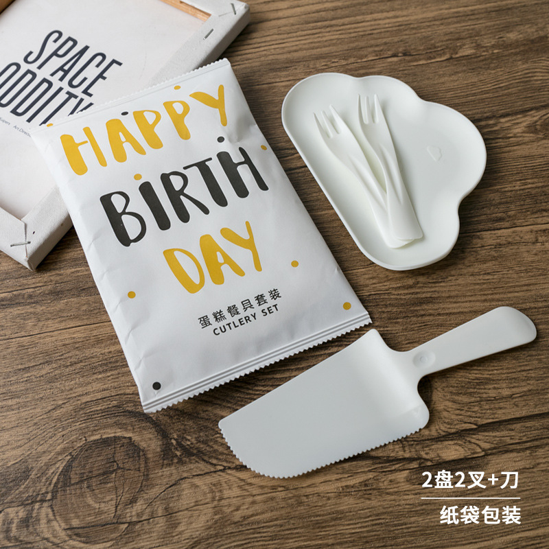 종이 접시, 접시 및 포크 세트 2 일회용 직사각형 접시 조합 종이 봉투 투인원 나이프 및 포크 케이크 식기 생일