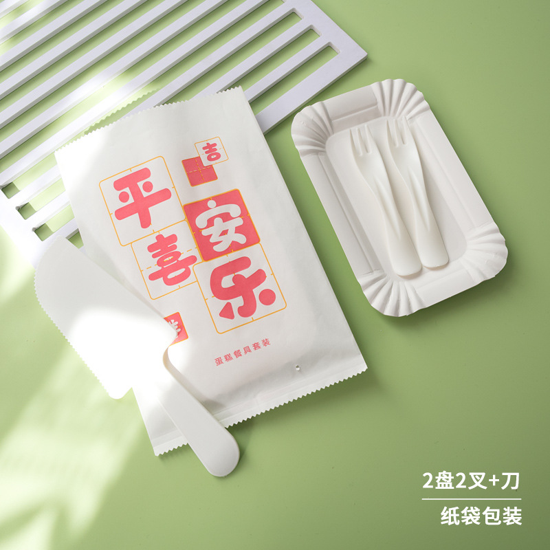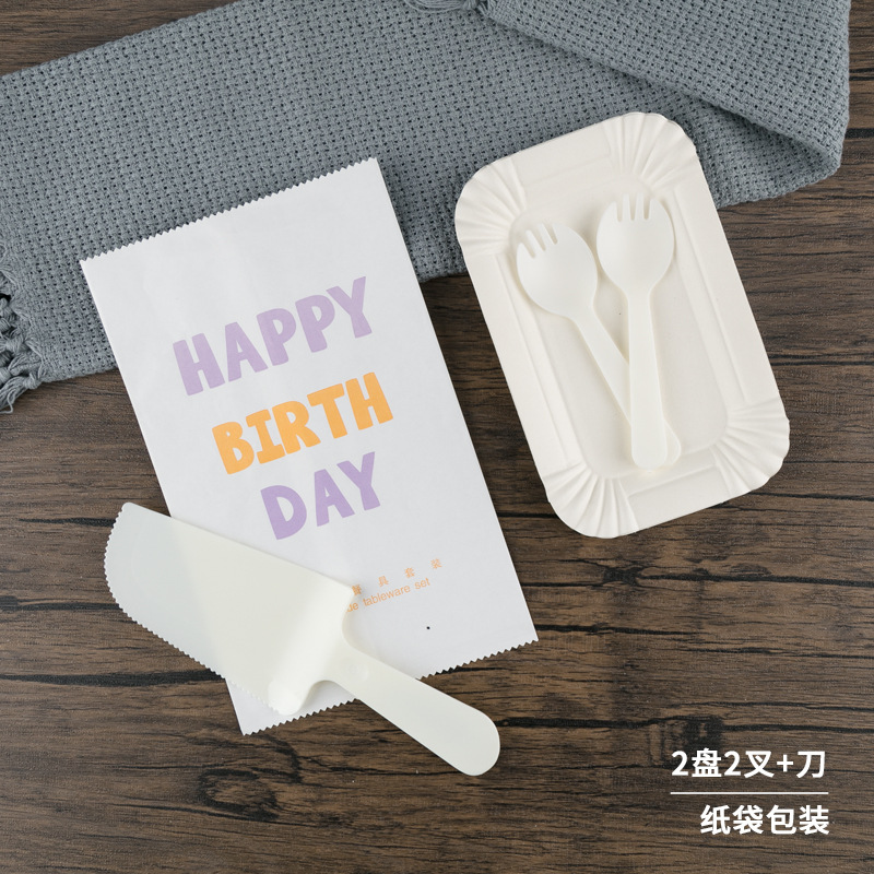 종이 접시, 접시 및 포크 세트 2 일회용 직사각형 접시 조합 종이 봉투 투인원 나이프 및 포크 케이크 식기 생일스토어 가기