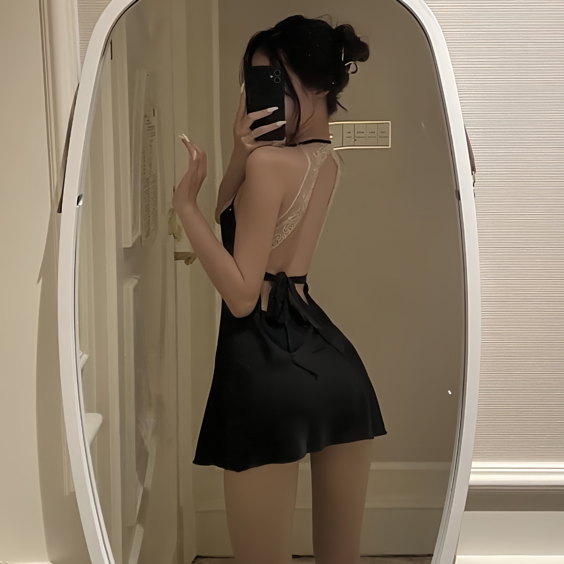 Su Aixing 플러스 사이즈 섹시한 잠옷 여름 여성의 얇은 얼음 실크 새로운 하이 엔드 서스펜더 잠옷 레이스 중공 유혹스토어 가기