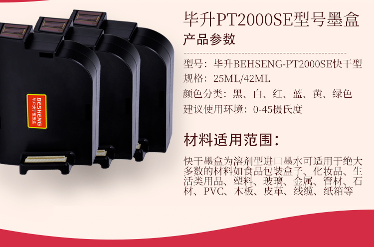 BESHENG은 Yunzhicai Weiyou PT2000SE 휴대용 잉크젯 프린터 코딩 기계 속건성 잉크 카트리지에 적합합니다.