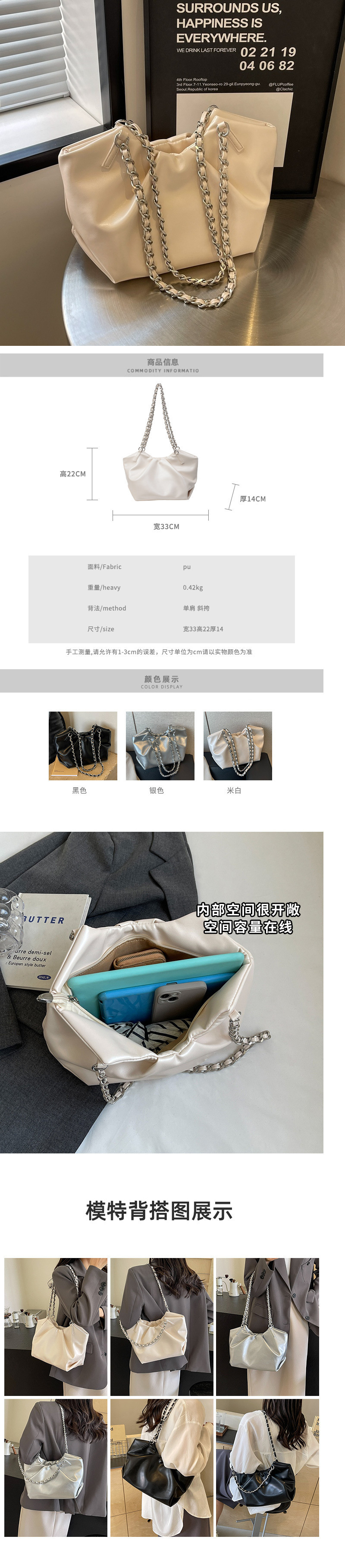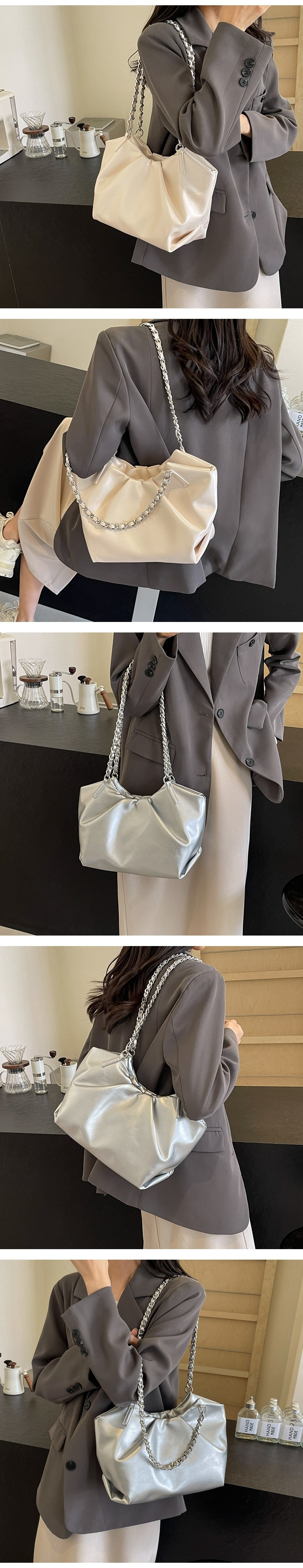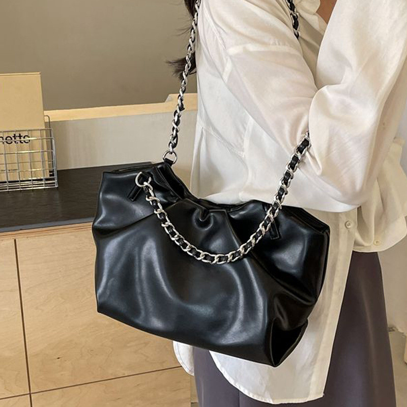 여성용 가방 대용량 새로운 하이 엔드 패션 틈새 디자인 겨드랑이 가방 인기있는 주름 체인 숄더 토트 백