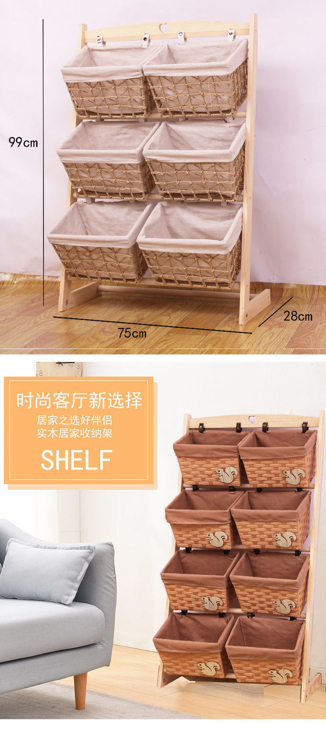 기타 수납 선반, 가정용 수납 선반, 바닥에서 천장까지 이어지는 다층 침실 및 거실 책 및 신문 선반, 원목 다층 스낵 수납 바구니스토어 가기