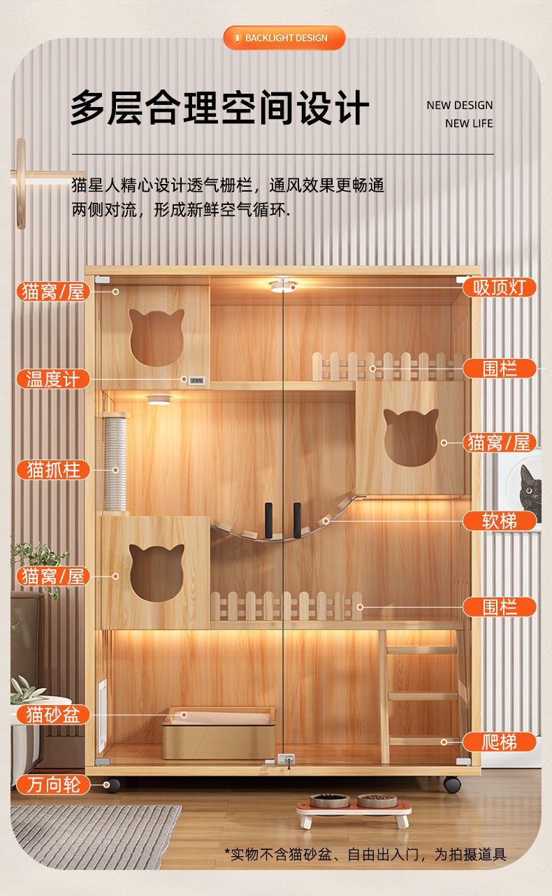 [매장 핫셀링] 고양이 빌라 원목 초대형 공간 고급 고양이 케이지 고양이 집 고양이 집 홈 실내 고양이