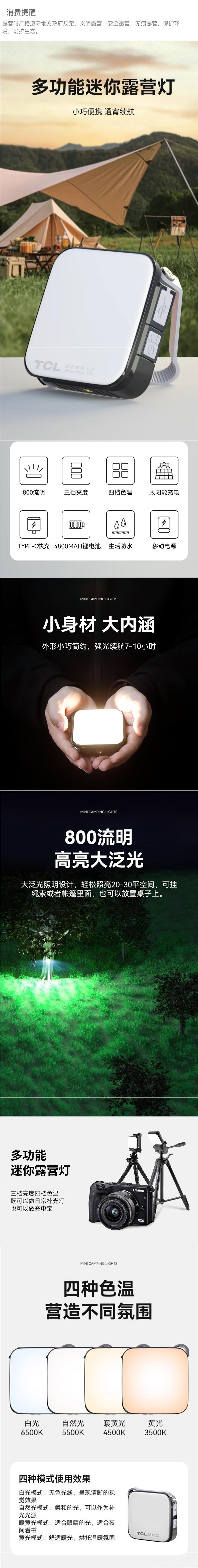 TCL 캠핑 램프 매우 긴 배터리 수명 태양열 충전 비상 조명 정전 홈 캠프 텐트 야외 조명