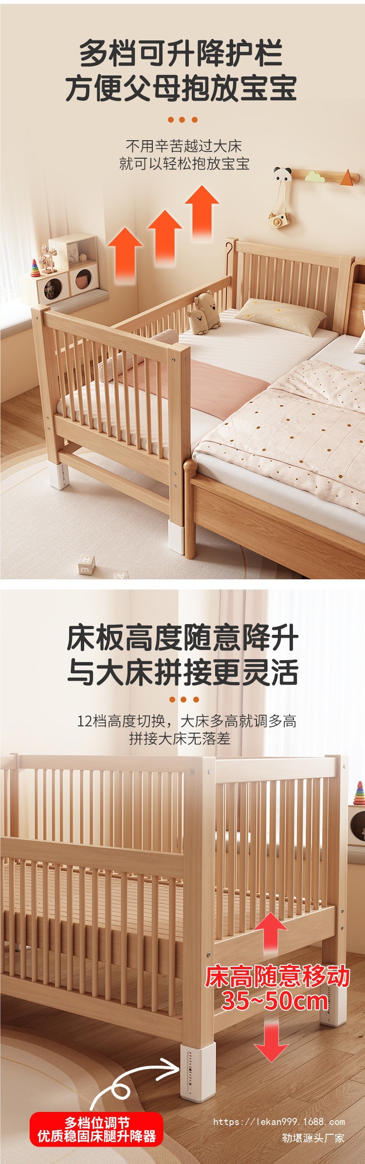 Yla 너도밤나무 접합 침대 어린이 침대 단단한 나무 유아용 침대 확장 접합 대형 침대 어린이 침대 옆 침대 어린이 접합