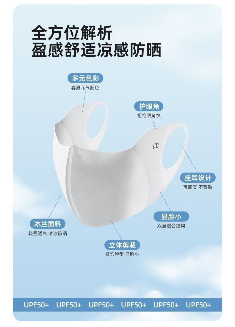 얼굴이 작은 성인을 위한 새로운 마스크, 쿨스킨 자외선 차단제, 여성 눈 보호, 아이스 실크 고급스러운 입체 자외선 차단 풀 페이스 마스크