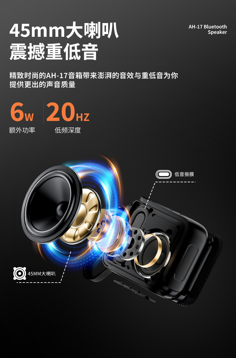 Aihua 블루투스 오디오 미니 휴대용 카드 플래시 드라이브 무선 소형 야외 서브 우퍼 자동차 새 모델