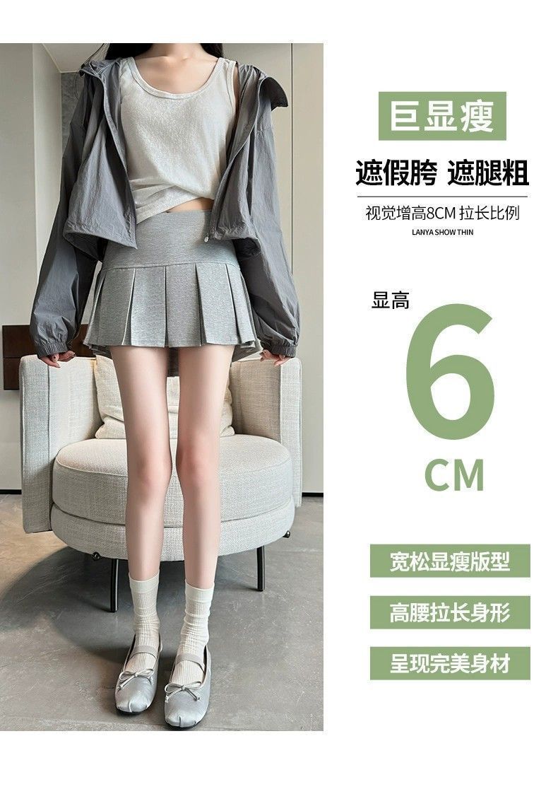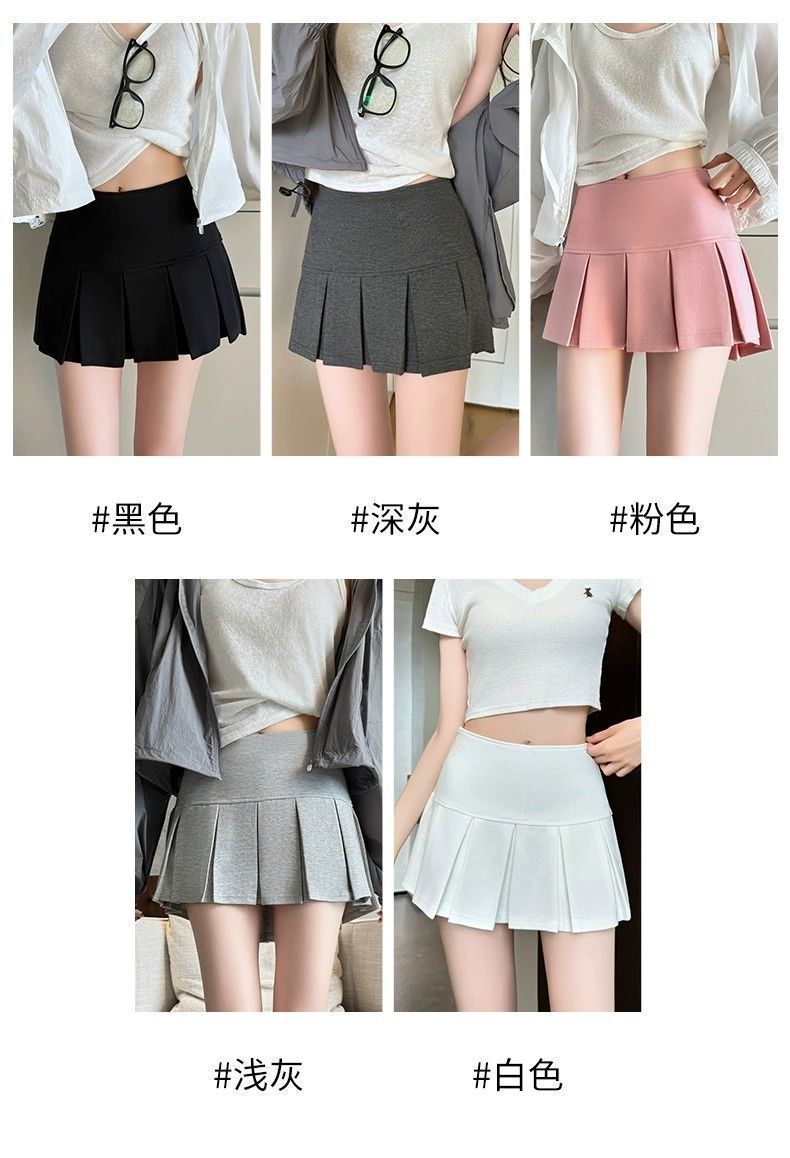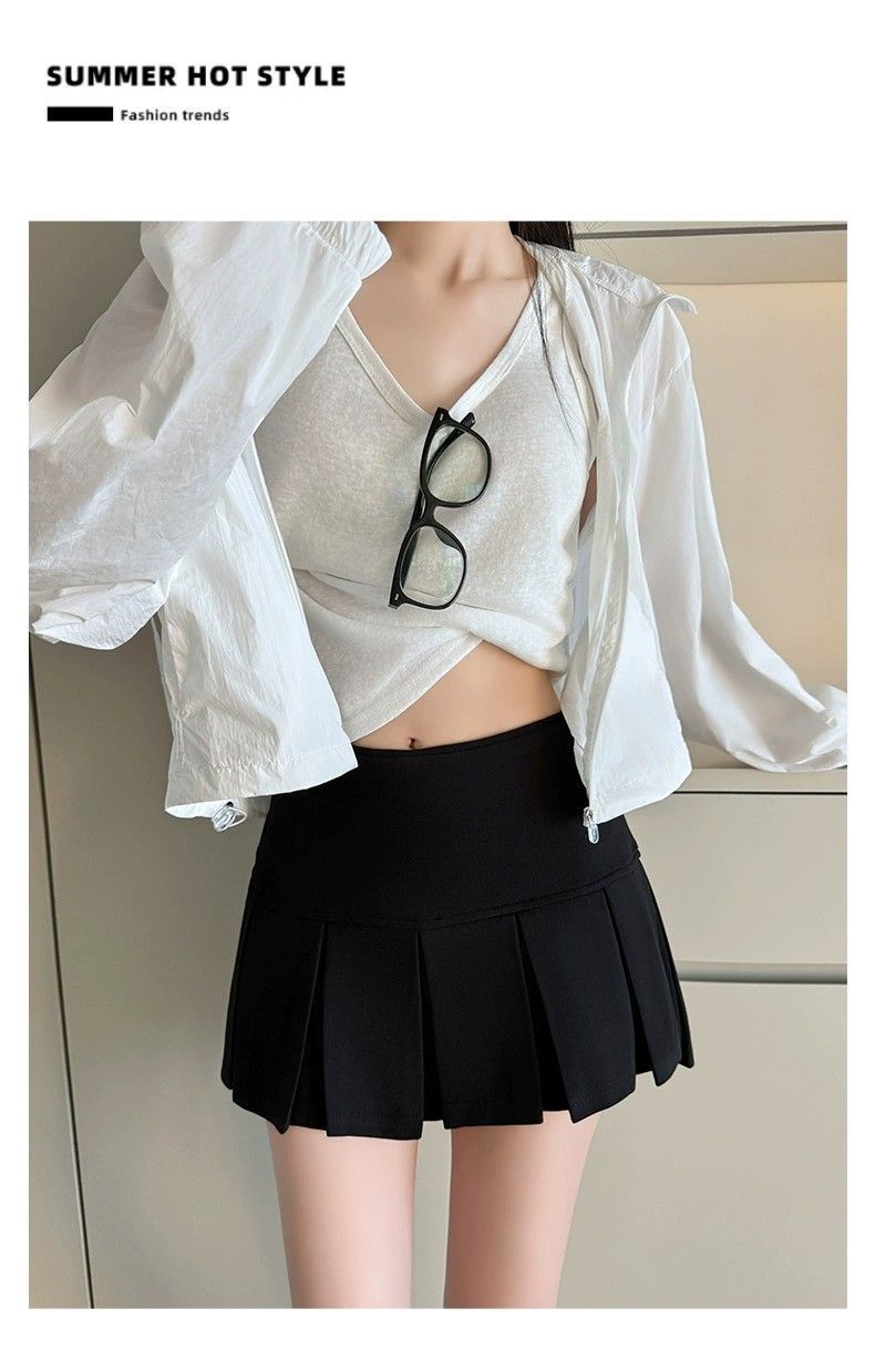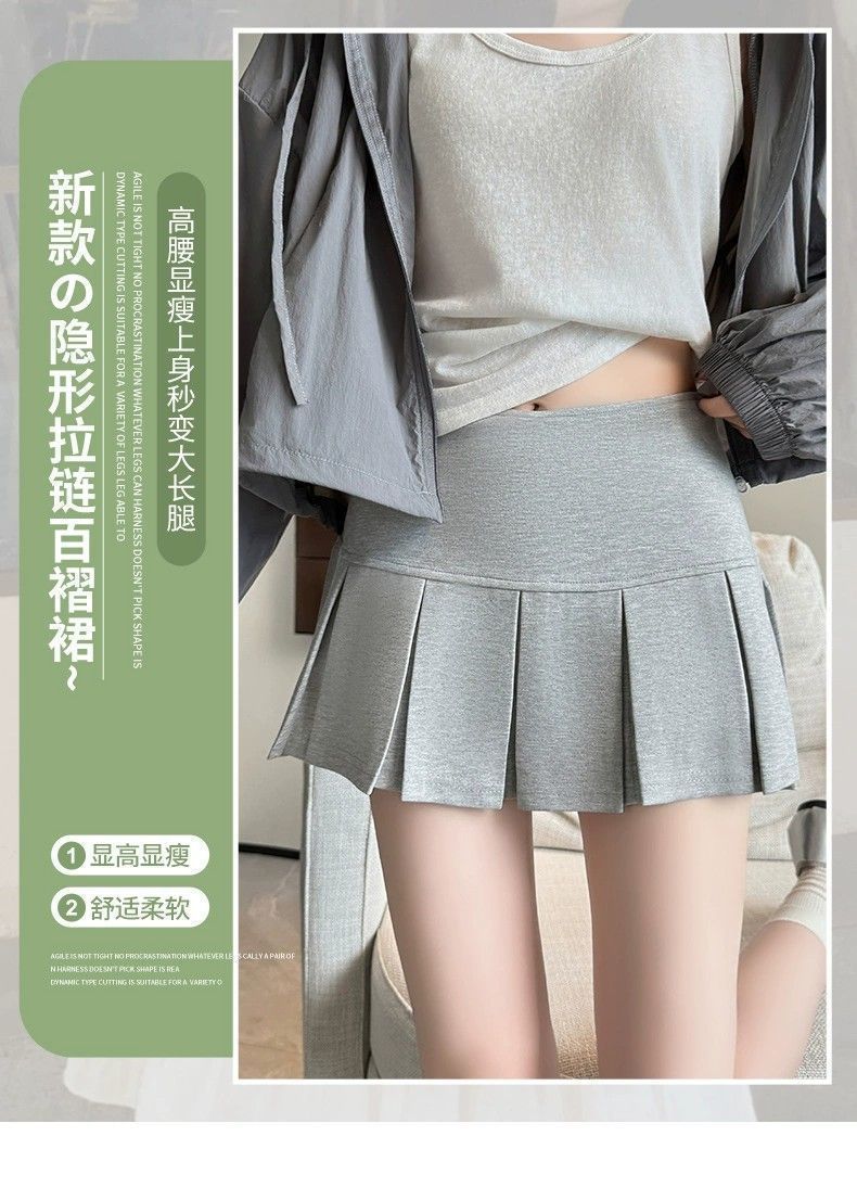 여성용 그레이 플리츠 스커트 여름 2025 새로운 하이 웨이스트 슬리밍 노출 방지 3점 스포츠 미니 스커트스토어 가기