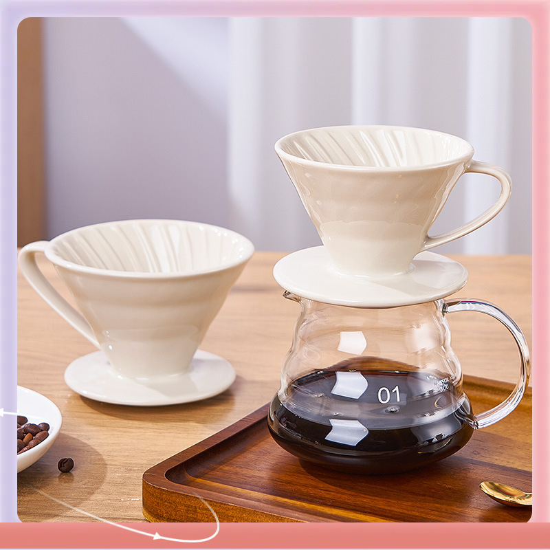 ✅ 포트 세라믹 커피 걸이 원추형 스레드 가정용 귀 V60 패턴 미국식 깔때기 필터 필터 종이 필터